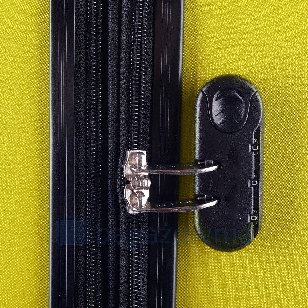 Luksusowa walizka, stworzona z myślą dla najbardziej wymagających klientów. Nowoczesny, lekki model wykonany z bardzo wytrzymałego i odpornego na zarysowanie tworzywa ABS Plus, z dwupoziomową teleskopową rączką. Zewnętrzne, przyjemne w dotyku gumowe uchwyty oraz zamek szyfrowy uniemożliwiający dostanie się do wnętrza osobom niepożądanym. Trwały, duraluminiowy stelaż wbudowany w walizkę. Wyposażony w cztery obrotowe kauczukowe kółka, które zapewniają stabilność oraz lekkość prowadzenia w dowolnym kierunku. Wnętrze w ciemnym sygnowanym kolorze dzielone zamkiem błyskawicznym na dwie funkcjonalne komory.