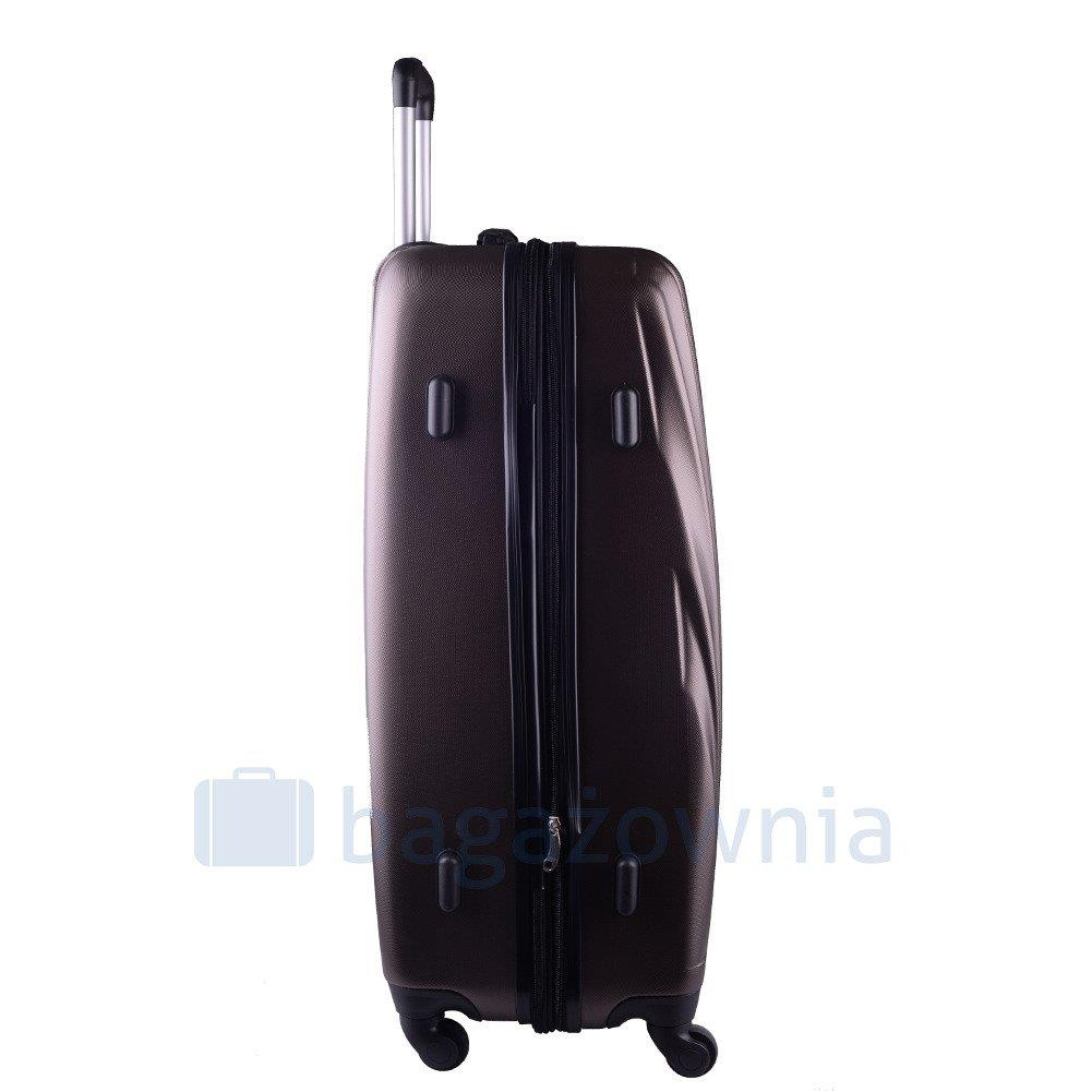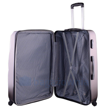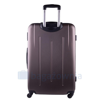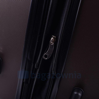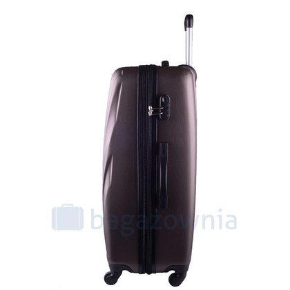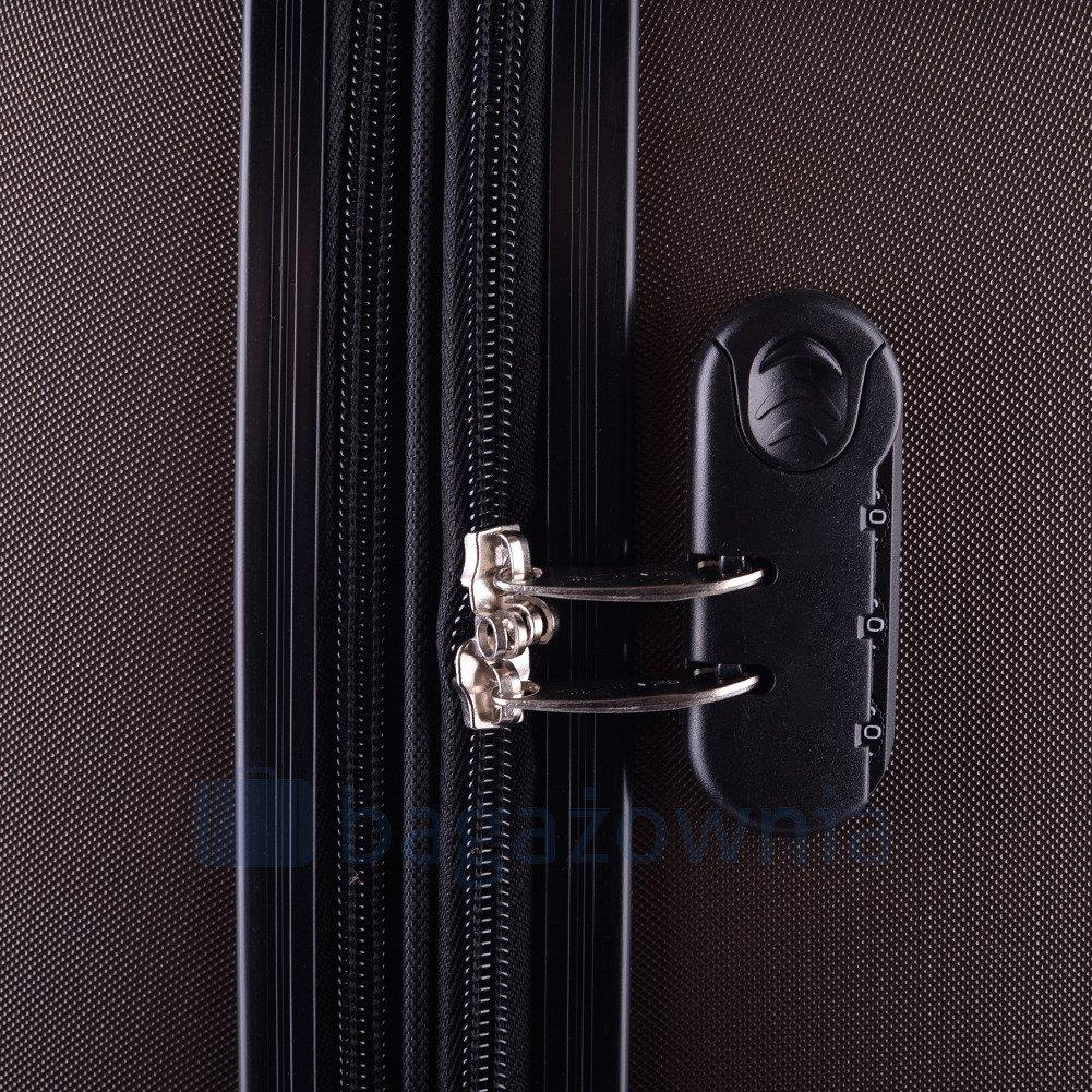 Nowoczesny, lekki model wykonany z bardzo wytrzymałego i odpornego na zarysowanie tworzywa ABS Plus, z dwupoziomową teleskopową rączką. Zewnętrzne, przyjemne w dotyku gumowe uchwyty oraz zamek szyfrowy uniemożliwiający dostanie się do wnętrza osobom niepożądanym. Trwały, duraluminiowy stelaż wbudowany w walizkę. Wyposażony w cztery odpinane, obrotowe kauczukowe kółka, które zapewniają stabilność oraz lekkość prowadzenia w dowolnym kierunku. Wnętrze w ciemnym sygnowanym kolorze dzielone zamkiem błyskawicznym na dwie funkcjonalne komory.