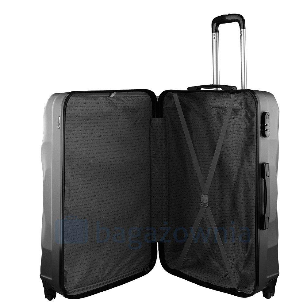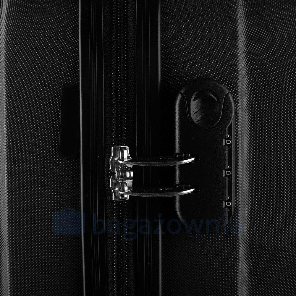 Nowoczesny, lekki model wykonany z bardzo wytrzymałego i odpornego na zarysowanie tworzywa ABS Plus, z dwupoziomową teleskopową rączką. Zewnętrzne, przyjemne w dotyku gumowe uchwyty oraz zamek szyfrowy uniemożliwiający dostanie się do wnętrza osobom niepożądanym. Trwały, duraluminiowy stelaż wbudowany w walizkę. Wyposażony w cztery, obrotowe kauczukowe kółka, które zapewniają stabilność oraz lekkość prowadzenia w dowolnym kierunku. Wnętrze w ciemnym sygnowanym kolorze dzielone zamkiem błyskawicznym na dwie funkcjonalne komory.