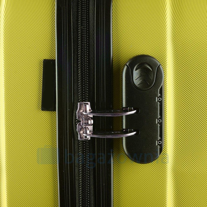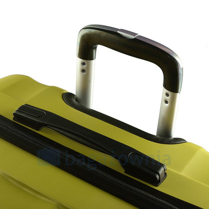 Nowoczesny, lekki model wykonany z bardzo wytrzymałego i odpornego na zarysowanie tworzywa ABS Plus, z dwupoziomową teleskopową rączką. Zewnętrzne, przyjemne w dotyku gumowe uchwyty oraz zamek szyfrowy uniemożliwiający dostanie się do wnętrza osobom niepożądanym. Trwały, duraluminiowy stelaż wbudowany w walizkę. Wyposażony w cztery, obrotowe kauczukowe kółka, które zapewniają stabilność oraz lekkość prowadzenia w dowolnym kierunku. Wnętrze w ciemnym sygnowanym kolorze dzielone zamkiem błyskawicznym na dwie funkcjonalne komory.