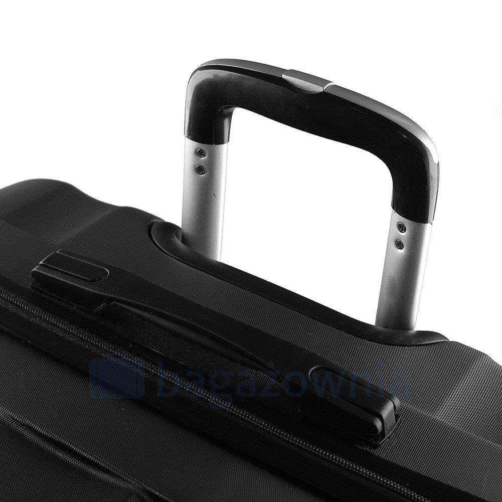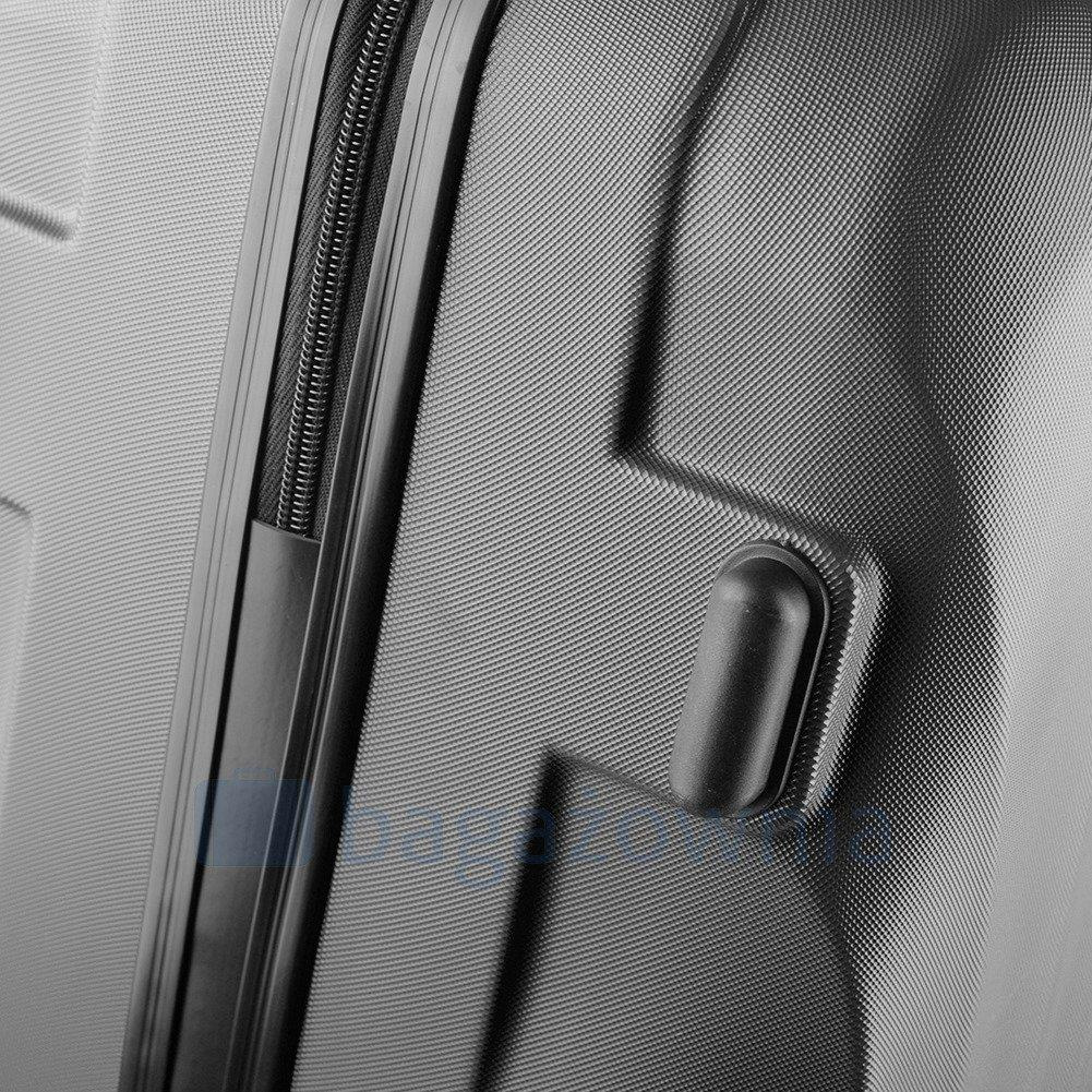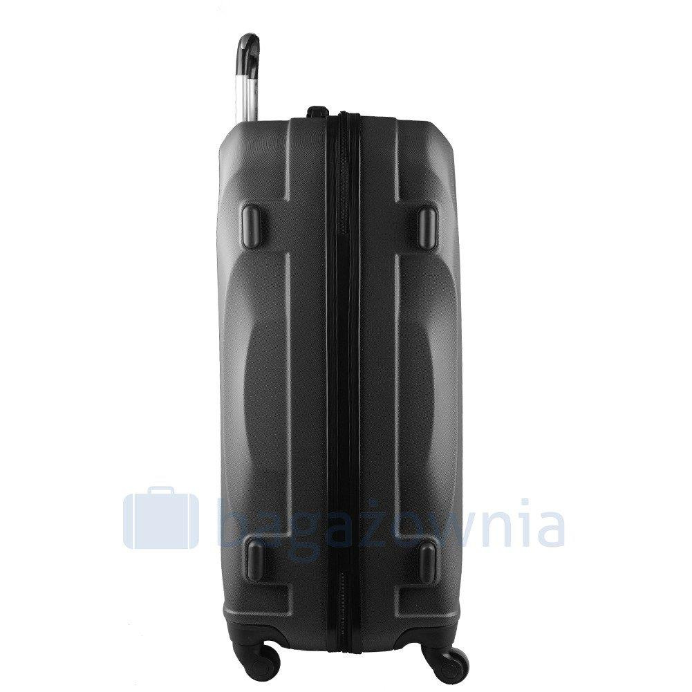 Nowoczesny, lekki model wykonany z bardzo wytrzymałego i odpornego na zarysowanie tworzywa ABS Plus, z dwupoziomową teleskopową rączką. Zewnętrzne, przyjemne w dotyku gumowe uchwyty oraz zamek szyfrowy uniemożliwiający dostanie się do wnętrza osobom niepożądanym. Trwały, duraluminiowy stelaż wbudowany w walizkę. Wyposażony w cztery ,obrotowe kauczukowe kółka, które zapewniają stabilność oraz lekkość prowadzenia w dowolnym kierunku. Wnętrze w ciemnym sygnowanym kolorze dzielone zamkiem błyskawicznym na dwie funkcjonalne komory.