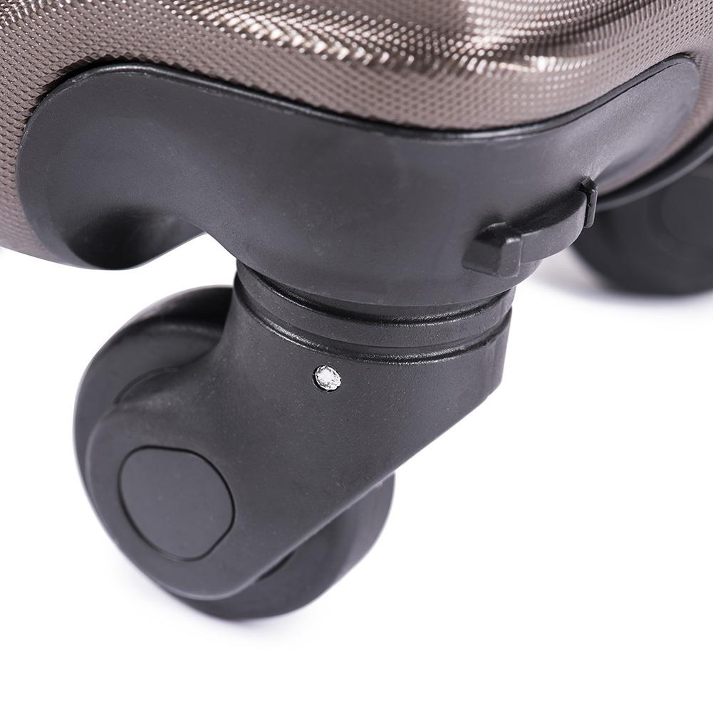Nowoczesny, lekki model wykonany z bardzo wytrzymałego i odpornego na zarysowanie tworzywa ABS Plus, z dwupoziomową teleskopową rączką. Zewnętrzne, przyjemne w dotyku gumowe uchwyty oraz zamek szyfrowy uniemożliwiający dostanie się do wnętrza osobom niepożądanym. Trwały, duraluminiowy stelaż wbudowany w walizkę. Wyposażony w cztery, obrotowe kauczukowe kółka, które zapewniają stabilność oraz lekkość prowadzenia w dowolnym kierunku. Wnętrze w ciemnym sygnowanym kolorze dzielone zamkiem błyskawicznym na dwie funkcjonalne komory.