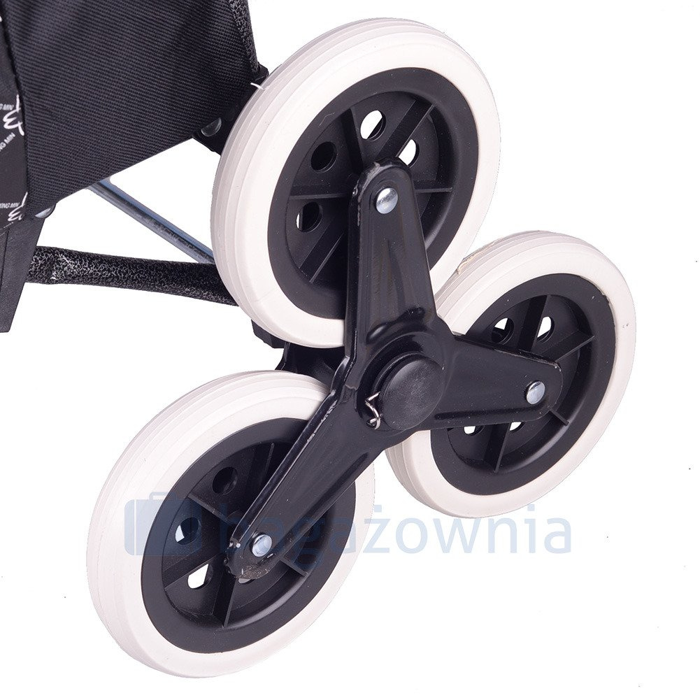 - 6 kółek (dostosowujących się do podłoża (po 3 z każdej ze stron) ułatwiających wnoszenie zakupów po schodach
