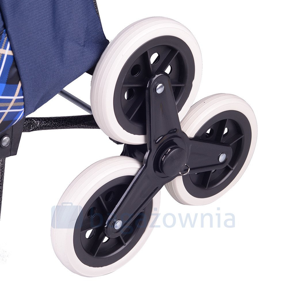 - 6 kółek (dostosowujących się do podłoża (po 3 z każdej ze stron) ułatwiających wnoszenie zakupów po schodach