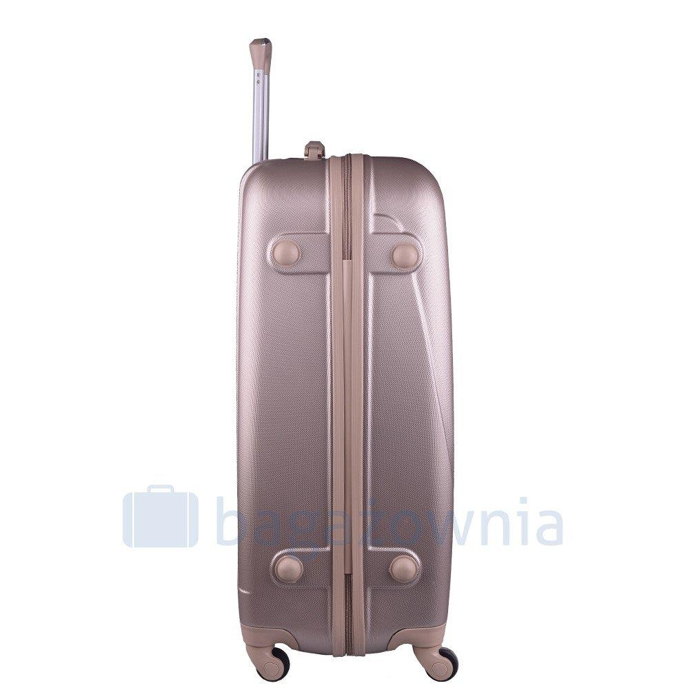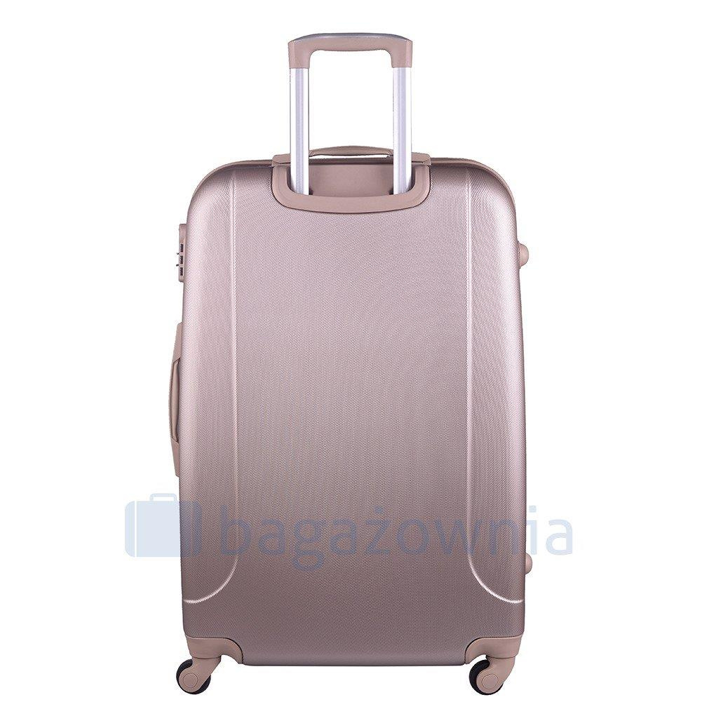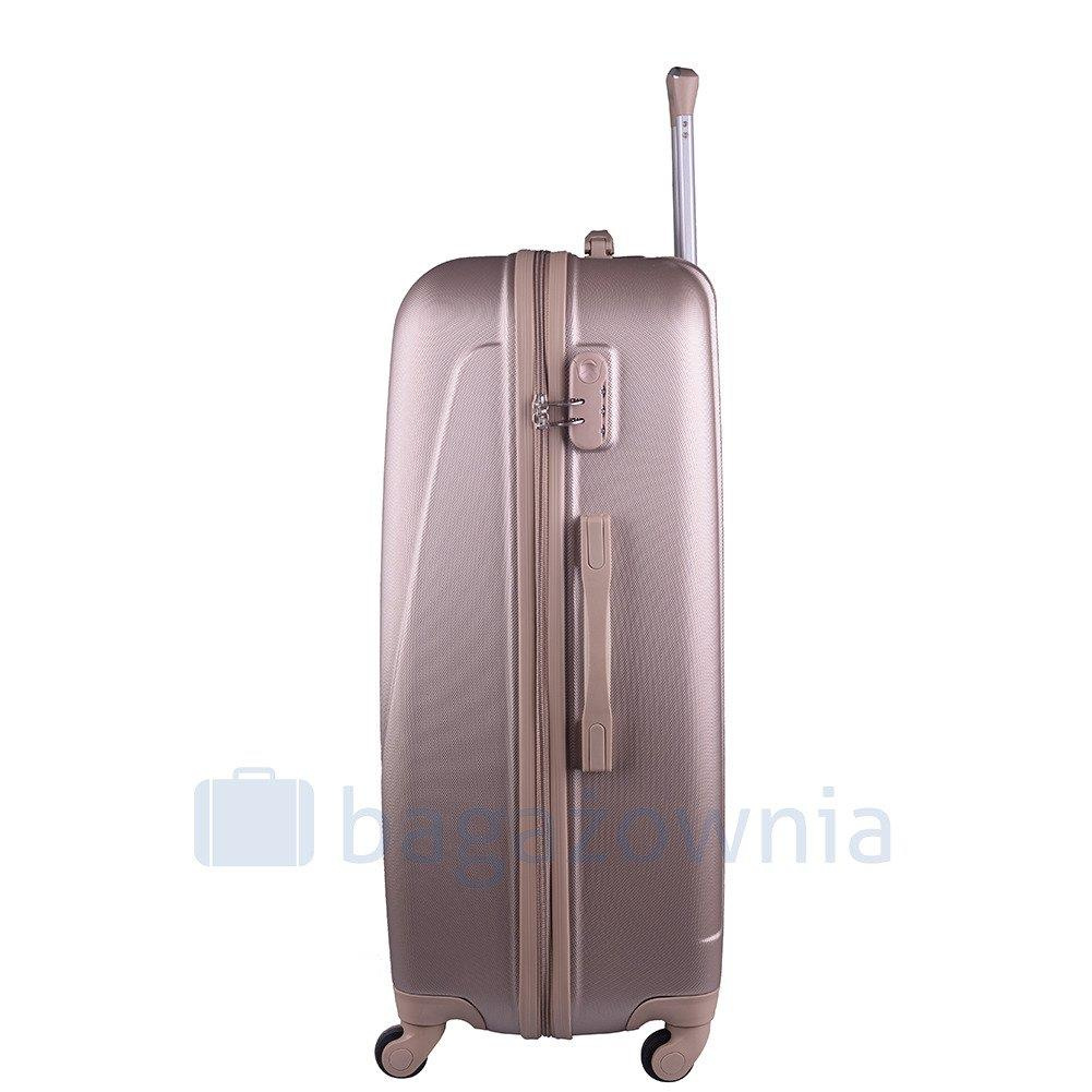 Nowoczesny, lekki model wykonany z bardzo wytrzymałego i odpornego na zarysowanie tworzywa ABS Plus, z dwupoziomową teleskopową rączką. Zewnętrzne, przyjemne w dotyku gumowe uchwyty oraz zamek szyfrowy uniemożliwiający dostanie się do wnętrza osobom niepożądanym. Trwały, duraluminiowy stelaż wbudowany w walizkę. Wyposażony w cztery obrotowe kauczukowe kółka, które zapewniają stabilność oraz lekkość prowadzenia w dowolnym kierunku. Wnętrze w ciemnym sygnowanym kolorze dzielone zamkiem błyskawicznym na dwie funkcjonalne komory.