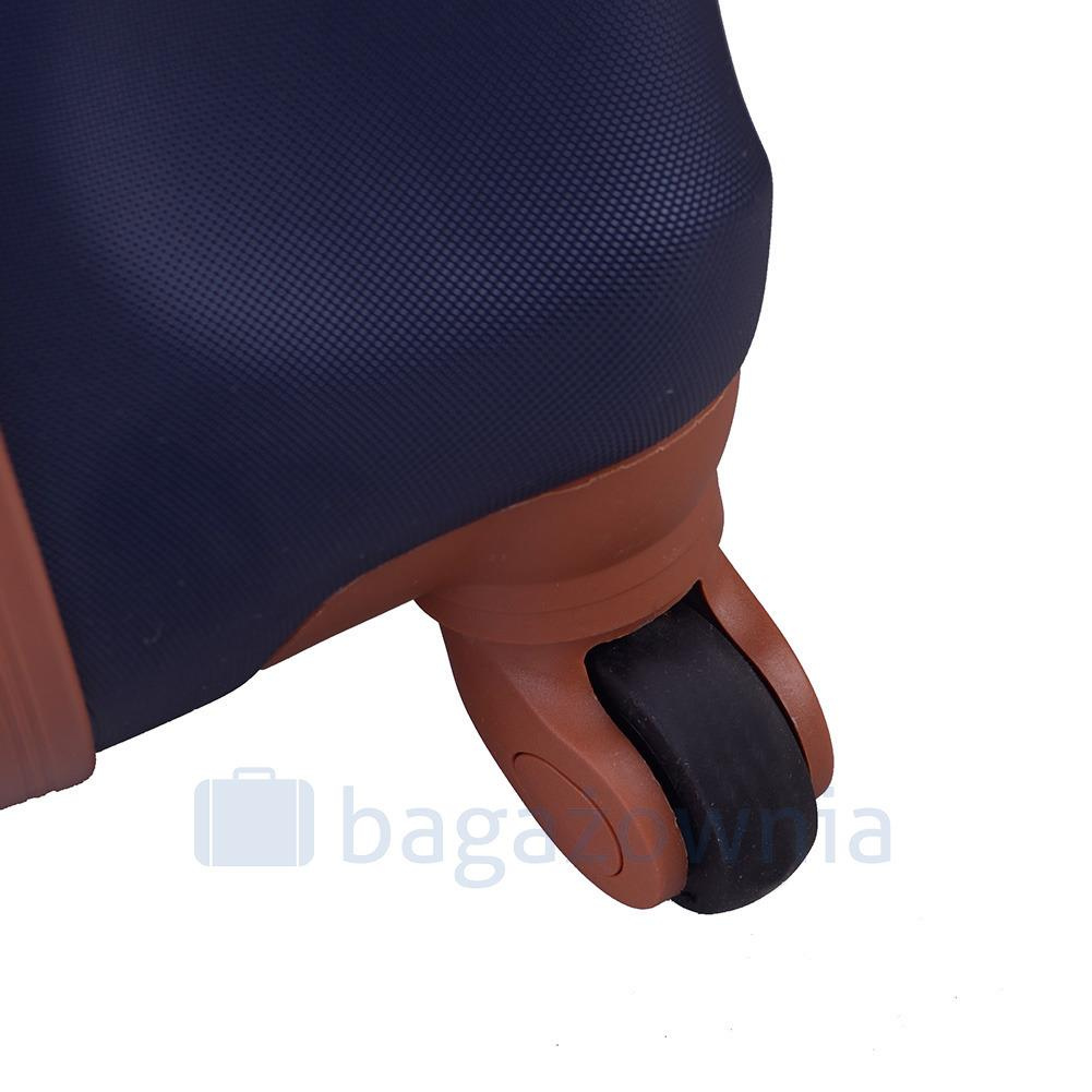 Nowoczesny, lekki model wykonany z bardzo wytrzymałego i odpornego na zarysowanie tworzywa ABS Plus, z dwupoziomową teleskopową rączką. Zewnętrzne, przyjemne w dotyku gumowe uchwyty oraz zamek szyfrowy uniemożliwiający dostanie się do wnętrza osobom niepożądanym. Trwały, duraluminiowy stelaż wbudowany w walizkę. Wyposażony w cztery obrotowe kauczukowe kółka, które zapewniają stabilność oraz lekkość prowadzenia w dowolnym kierunku. Wnętrze w ciemnym sygnowanym kolorze dzielone zamkiem błyskawicznym na dwie funkcjonalne komory.