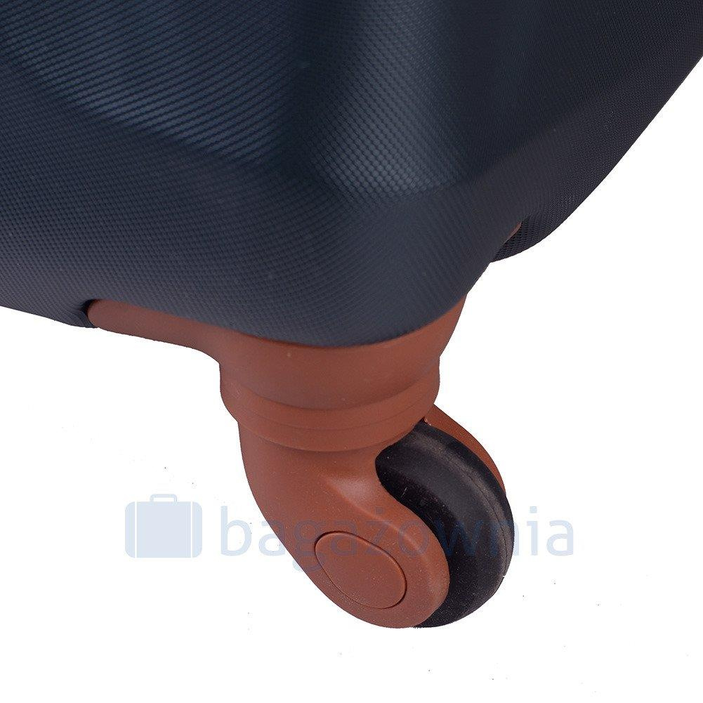 Nowoczesny, lekki model wykonany z bardzo wytrzymałego i odpornego na zarysowanie tworzywa ABS Plus, z dwupoziomową teleskopową rączką. Zewnętrzne, przyjemne w dotyku gumowe uchwyty oraz zamek szyfrowy uniemożliwiający dostanie się do wnętrza osobom niepożądanym. Trwały, duraluminiowy stelaż wbudowany w walizkę. Wyposażony w cztery obrotowe kauczukowe kółka, które zapewniają stabilność oraz lekkość prowadzenia w dowolnym kierunku. Wnętrze w ciemnym sygnowanym kolorze dzielone zamkiem błyskawicznym na dwie funkcjonalne komory.