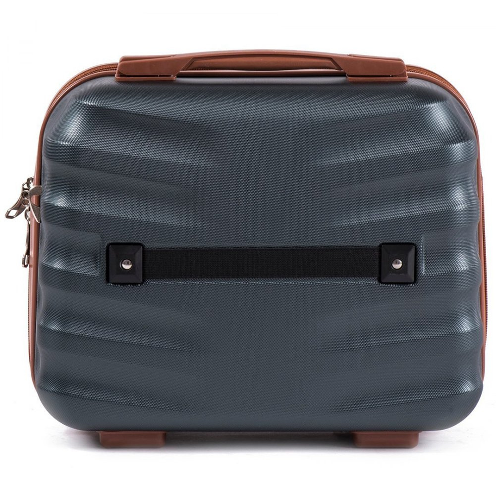 - na tylnej powierzchni znajduje się gumowa taśma do zamocowania kuferka na wysuwanej rączce walizki