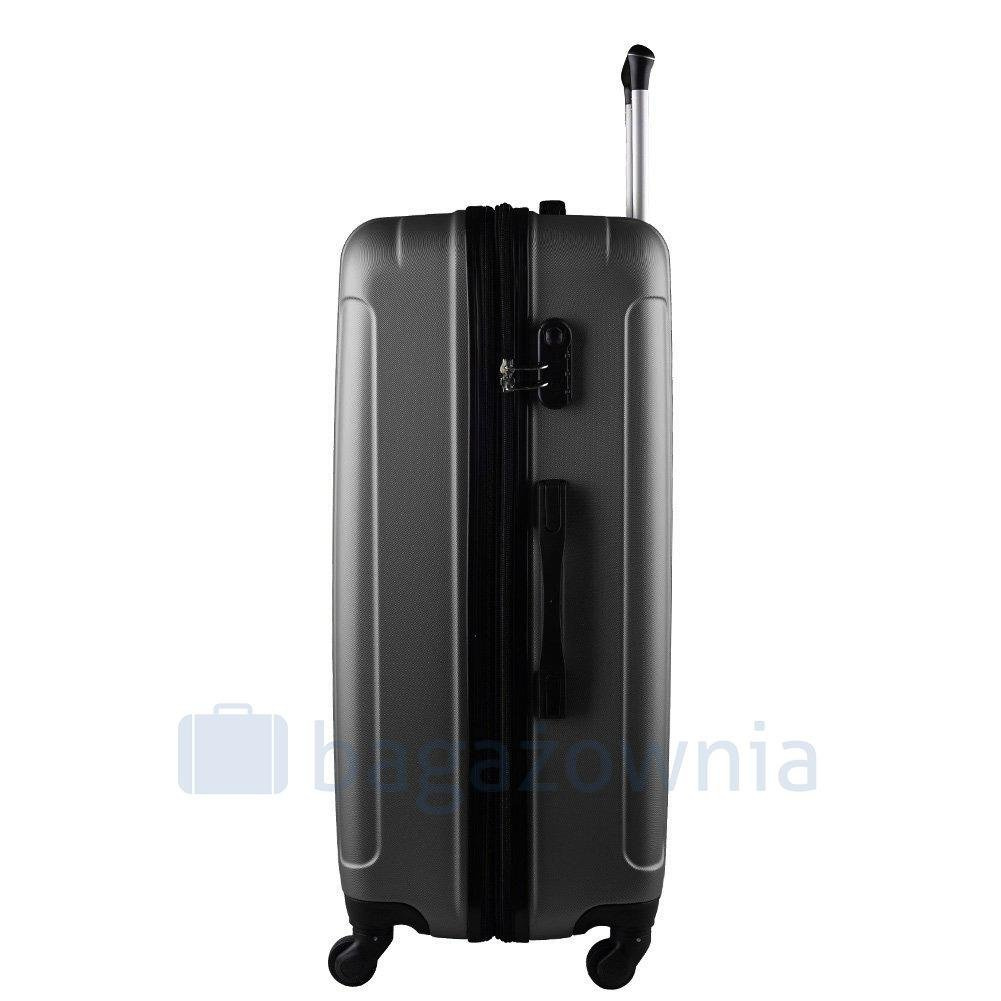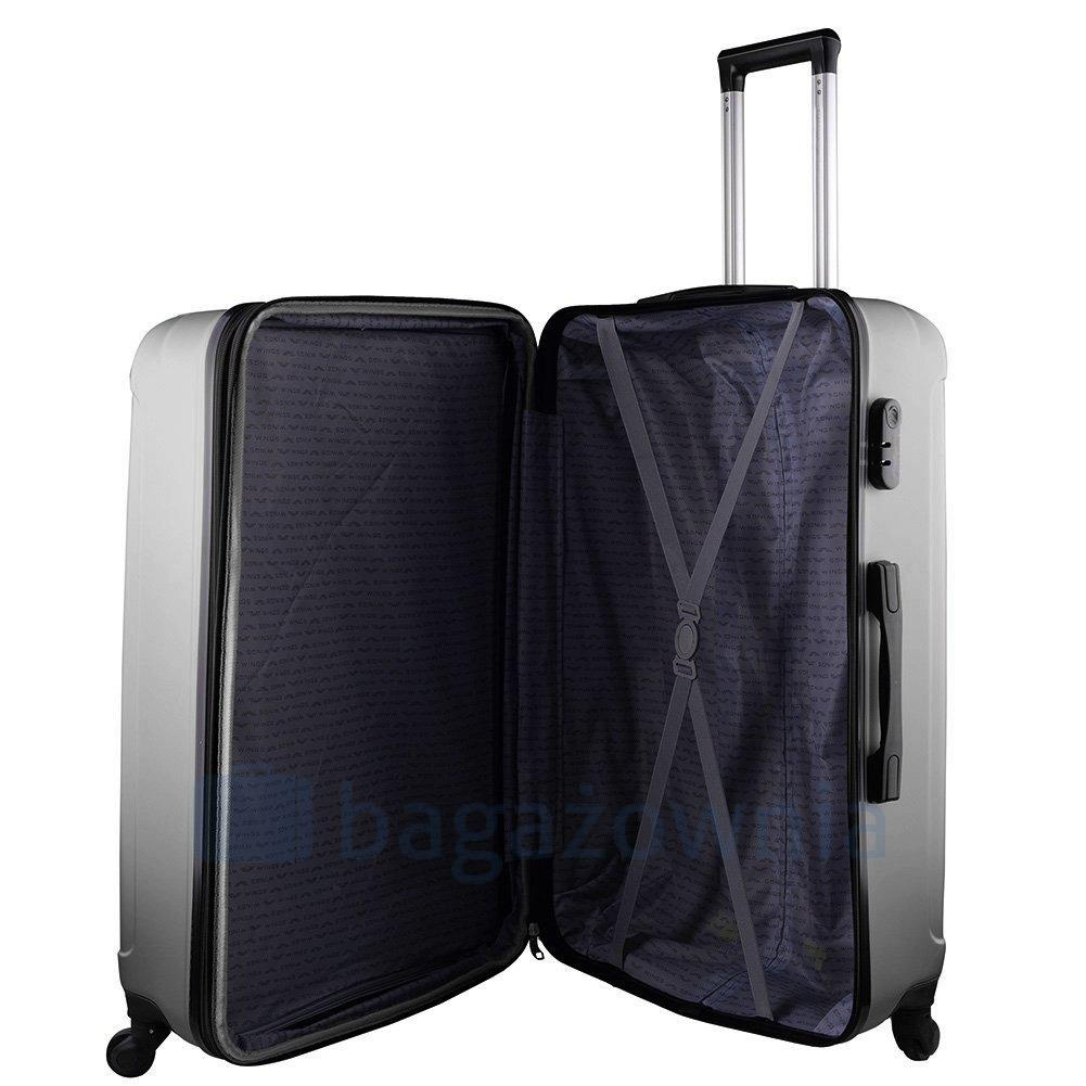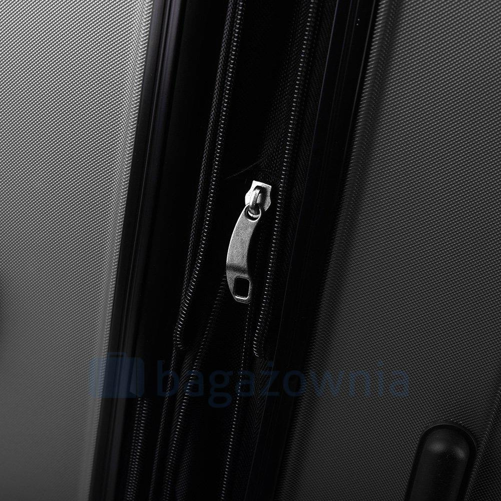 Nowoczesny, lekki model wykonany z bardzo wytrzymałego i odpornego na zarysowanie tworzywa ABS Plus, z dwupoziomową teleskopową rączką. Zewnętrzne, przyjemne w dotyku gumowe uchwyty oraz zamek szyfrowy uniemożliwiający dostanie się do wnętrza osobom niepożądanym. Trwały, duraluminiowy stelaż wbudowany w walizkę. Wyposażony w cztery obrotowe kauczukowe kółka, które zapewniają stabilność oraz lekkość prowadzenia w dowolnym kierunku. Wnętrze w ciemnym sygnowanym kolorze dzielone zamkiem błyskawicznym na dwie funkcjonalne komory.