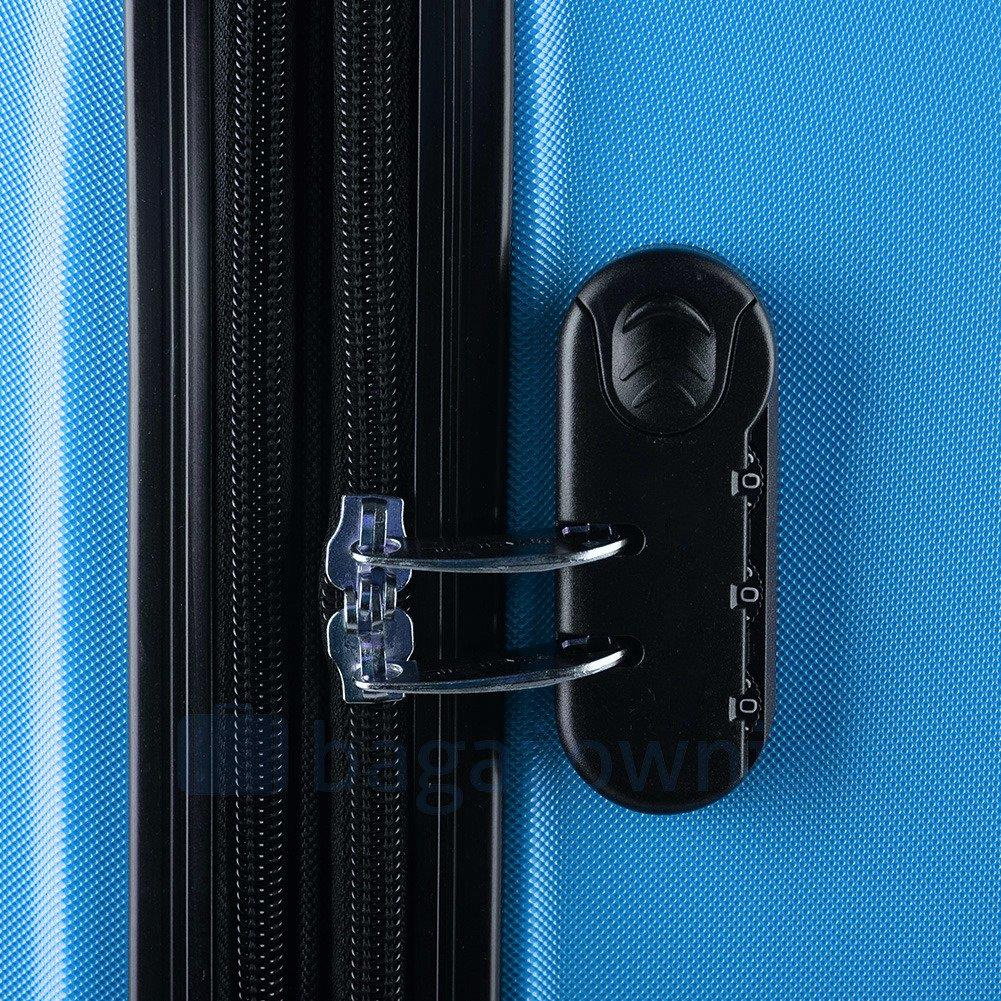Nowoczesny, lekki model wykonany z bardzo wytrzymałego i odpornego na zarysowanie tworzywa ABS Plus, z dwupoziomową teleskopową rączką. Zewnętrzne, przyjemne w dotyku gumowe uchwyty oraz zamek szyfrowy uniemożliwiający dostanie się do wnętrza osobom niepożądanym. Trwały, duraluminiowy stelaż wbudowany w walizkę. Wyposażony w cztery obrotowe kauczukowe kółka, które zapewniają stabilność oraz lekkość prowadzenia w dowolnym kierunku. Wnętrze w ciemnym sygnowanym kolorze dzielone zamkiem błyskawicznym na dwie funkcjonalne komory.