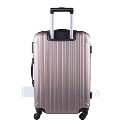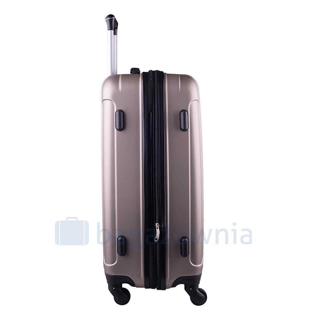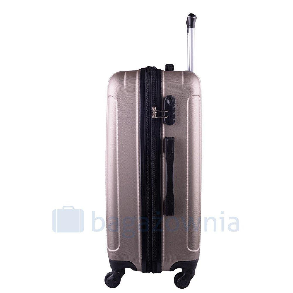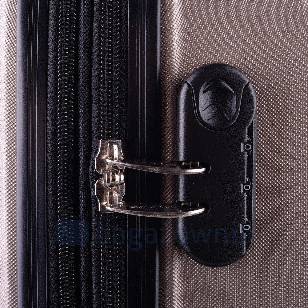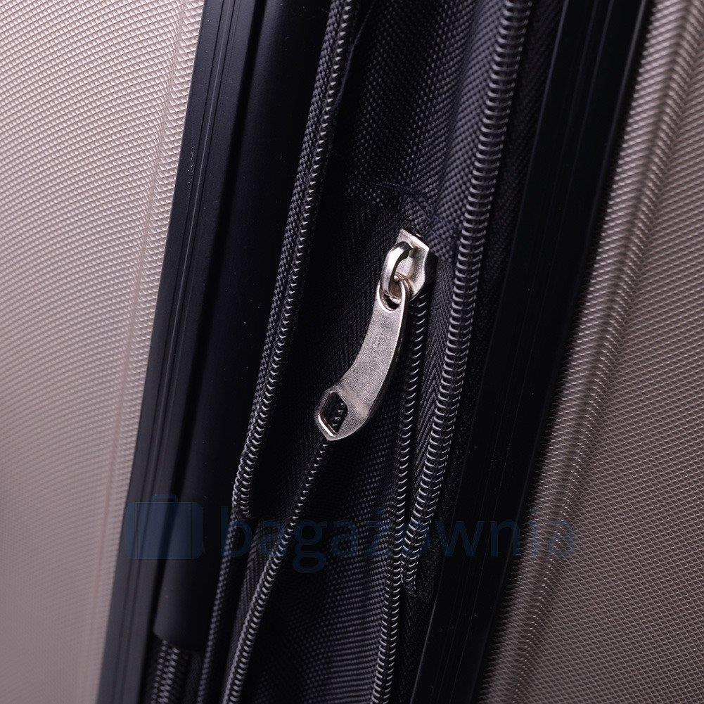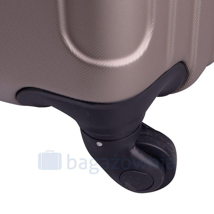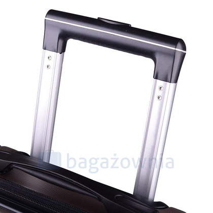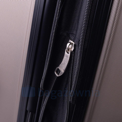Nowoczesny, lekki model wykonany z bardzo wytrzymałego i odpornego na zarysowanie tworzywa ABS Plus, z dwupoziomową teleskopową rączką. Zewnętrzne, przyjemne w dotyku gumowe uchwyty oraz zamek szyfrowy uniemożliwiający dostanie się do wnętrza osobom niepożądanym. Trwały, duraluminiowy stelaż wbudowany w walizkę. Wyposażony w cztery obrotowe kauczukowe kółka, które zapewniają stabilność oraz lekkość prowadzenia w dowolnym kierunku. Wnętrze w ciemnym sygnowanym kolorze dzielone zamkiem błyskawicznym na dwie funkcjonalne komory.