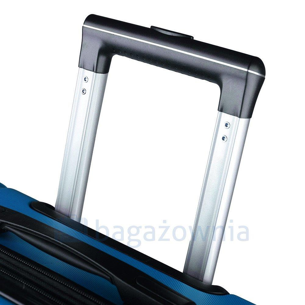 Nowoczesny, lekki model wykonany z bardzo wytrzymałego i odpornego na zarysowanie tworzywa ABS Plus, z dwupoziomową teleskopową rączką. Zewnętrzne, przyjemne w dotyku gumowe uchwyty oraz zamek szyfrowy uniemożliwiający dostanie się do wnętrza osobom niepożądanym. Trwały, duraluminiowy stelaż wbudowany w walizkę. Wyposażony w cztery obrotowe kauczukowe kółka, które zapewniają stabilność oraz lekkość prowadzenia w dowolnym kierunku. Wnętrze w ciemnym sygnowanym kolorze dzielone zamkiem błyskawicznym na dwie funkcjonalne komory.
