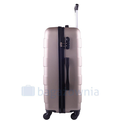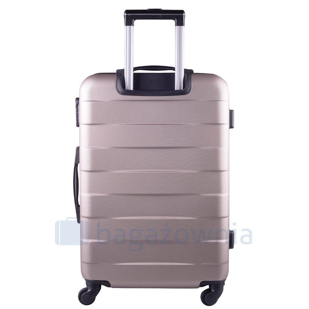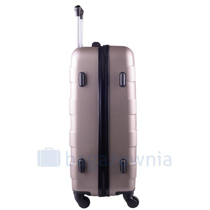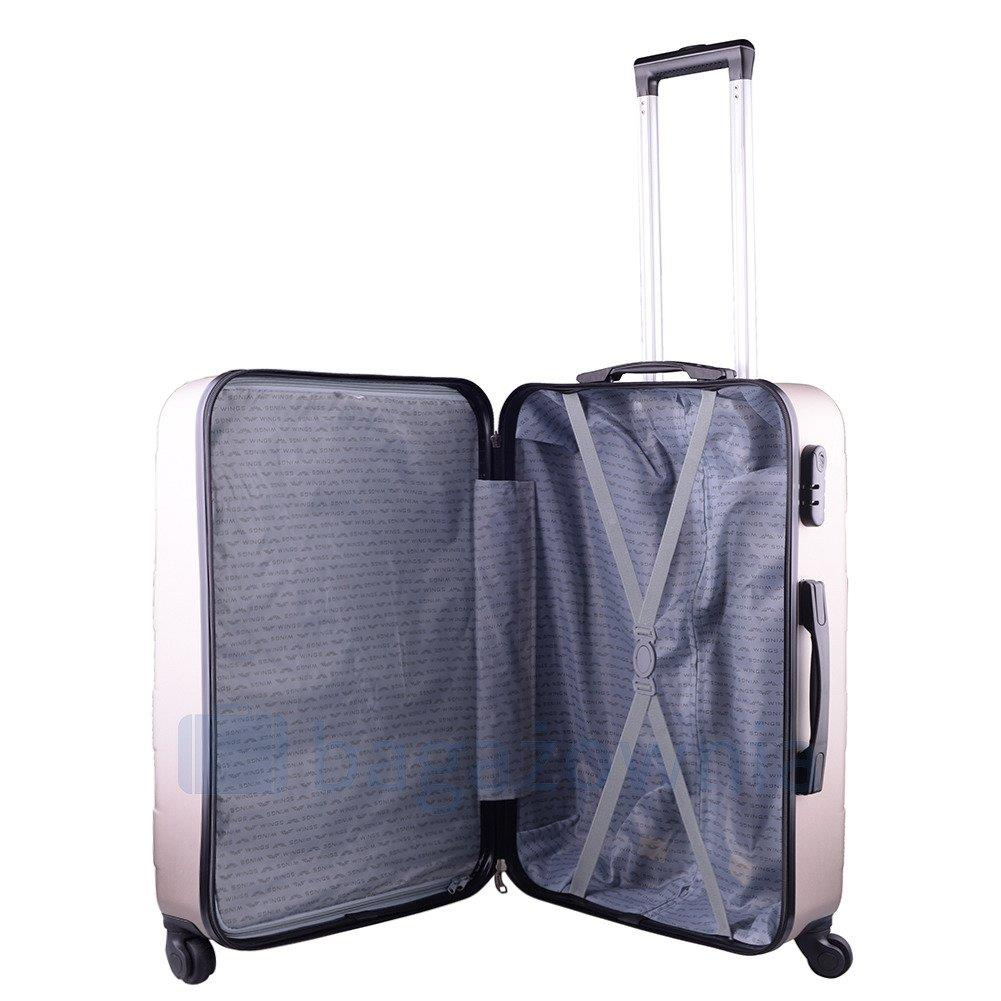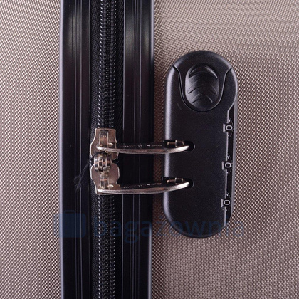 Nowoczesny, lekki model wykonany z bardzo wytrzymałego i odpornego na zarysowanie tworzywa ABS Plus, z dwupoziomową teleskopową rączką. Zewnętrzne, przyjemne w dotyku gumowe uchwyty oraz zamek szyfrowy uniemożliwiający dostanie się do wnętrza osobom niepożądanym. Trwały, duraluminiowy stelaż wbudowany w walizkę. Wyposażony w cztery obrotowe kauczukowe kółka, które zapewniają stabilność oraz lekkość prowadzenia w dowolnym kierunku. Wnętrze w ciemnym sygnowanym kolorze dzielone zamkiem błyskawicznym na dwie funkcjonalne komory.
