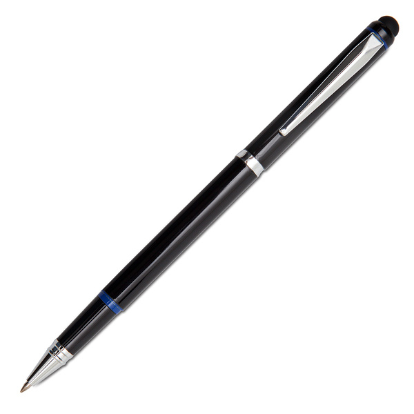 - Zestaw składa się z aluminiowego długopisu i pióra kulkowego wyposażonych w końcówkę do obsługi ekranów dotykowych.