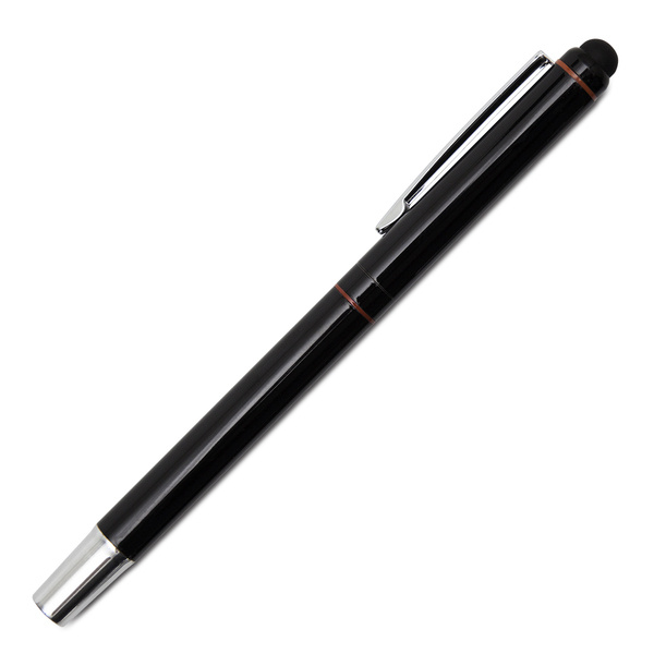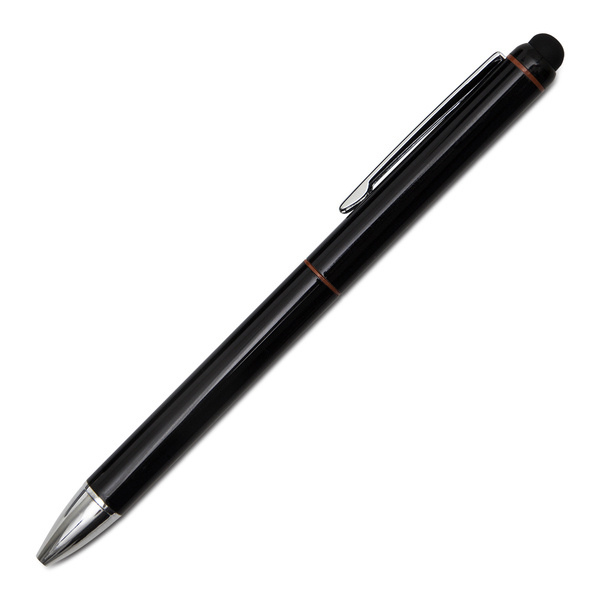 - Zestaw składa się z aluminiowego długopisu i pióra kulkowego wyposażonych w końcówkę do obsługi ekranów dotykowych.