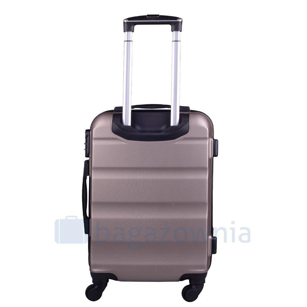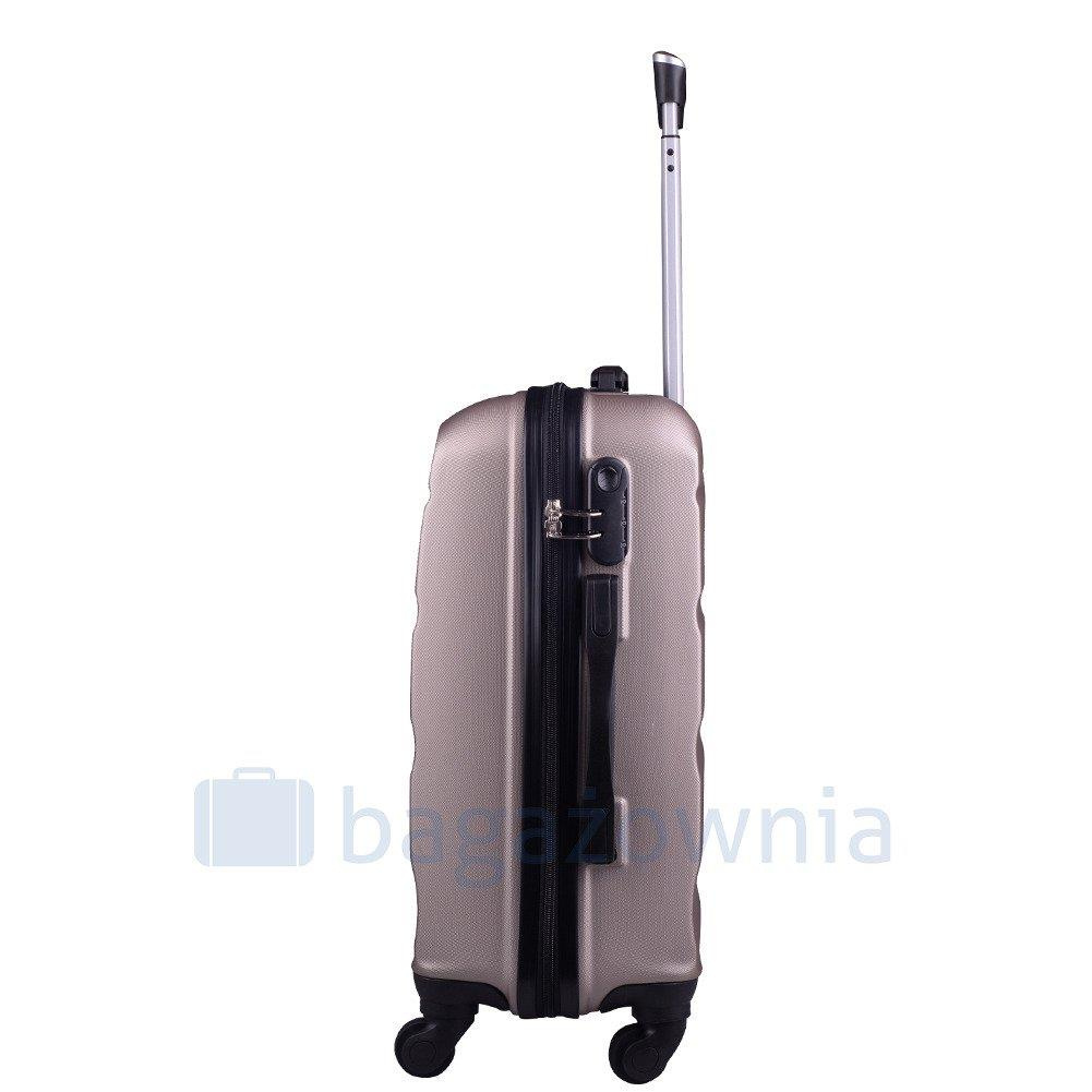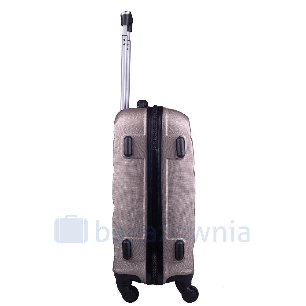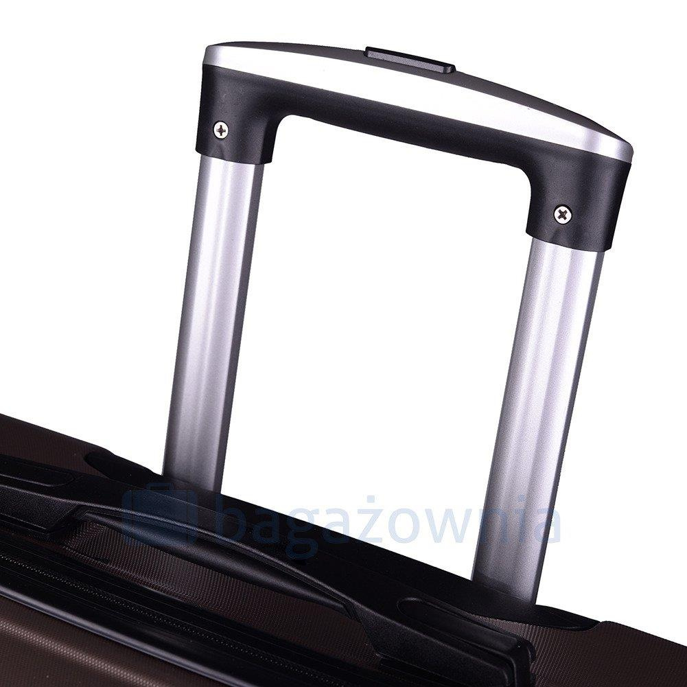 Nowoczesny, lekki model wykonany z bardzo wytrzymałego i odpornego na zarysowanie tworzywa ABS Plus, z dwupoziomową teleskopową rączką. Zewnętrzne, przyjemne w dotyku gumowe uchwyty oraz zamek szyfrowy uniemożliwiający dostanie się do wnętrza osobom niepożądanym. Trwały, duraluminiowy stelaż wbudowany w walizkę. Wyposażony w cztery odpinane, obrotowe kauczukowe kółka, które zapewniają stabilność oraz lekkość prowadzenia w dowolnym kierunku. Wnętrze w ciemnym sygnowanym kolorze dzielone zamkiem błyskawicznym na dwie funkcjonalne komory.
