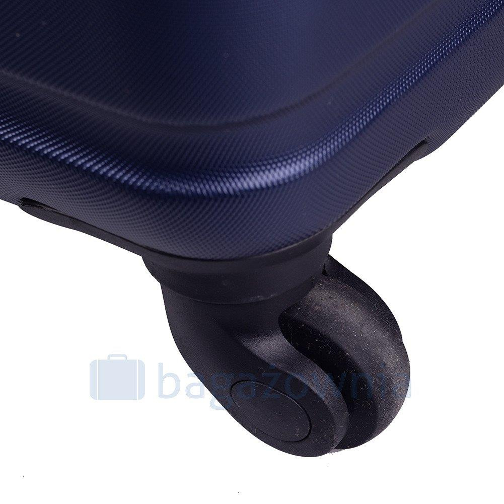 Nowoczesny, lekki model wykonany z bardzo wytrzymałego i odpornego na zarysowanie tworzywa ABS Plus, z dwupoziomową teleskopową rączką. Zewnętrzne, przyjemne w dotyku gumowe uchwyty oraz zamek szyfrowy uniemożliwiający dostanie się do wnętrza osobom niepożądanym. Trwały, duraluminiowy stelaż wbudowany w walizkę. Wyposażony w cztery obrotowe kauczukowe kółka, które zapewniają stabilność oraz lekkość prowadzenia w dowolnym kierunku. Wnętrze w jasnym kolorze dzielone zamkiem błyskawicznym na dwie funkcjonalne komory.