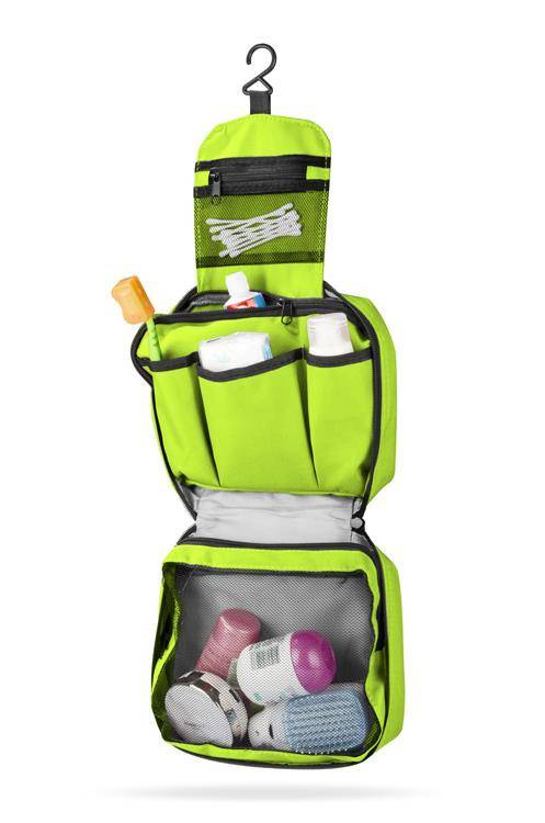 - Kosmetyczka wyposażona jest w wieszak, który pozwala na powieszenie jej w toalecie.