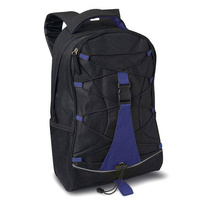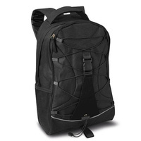 Czarny plecak z kolorową, kontrastową wkładką i dekoracyjną linką z przodu.