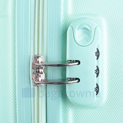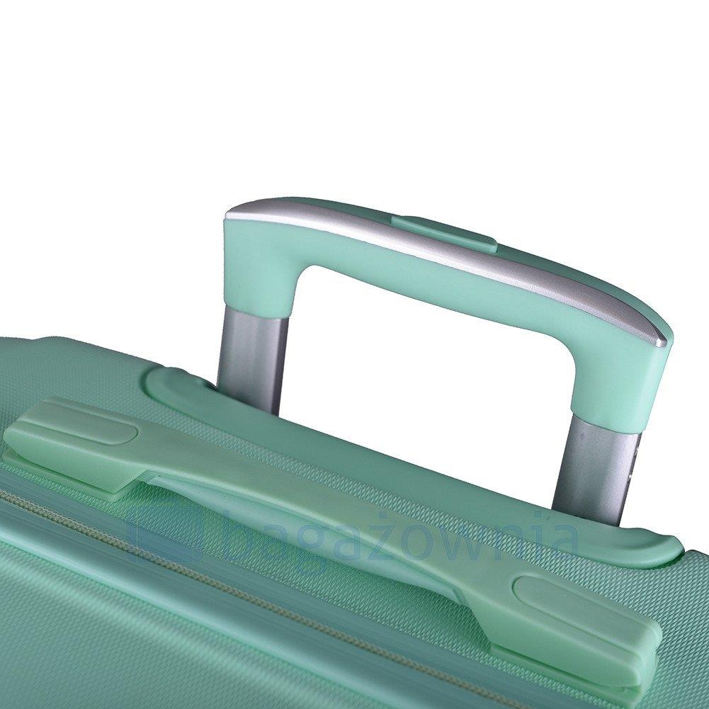 Nowoczesny, lekki model wykonany z bardzo wytrzymałego i odpornego na zarysowanie tworzywa ABS Plus, z dwupoziomową teleskopową rączką. Zewnętrzne, przyjemne w dotyku gumowe uchwyty oraz zamek szyfrowy uniemożliwiający dostanie się do wnętrza osobom niepożądanym. Trwały, duraluminiowy stelaż wbudowany w walizkę. Wyposażony w cztery obrotowe kauczukowe kółka, które zapewniają stabilność oraz lekkość prowadzenia w dowolnym kierunku. Wnętrze w ciemnym sygnowanym kolorze dzielone zamkiem błyskawicznym na dwie funkcjonalne komory.