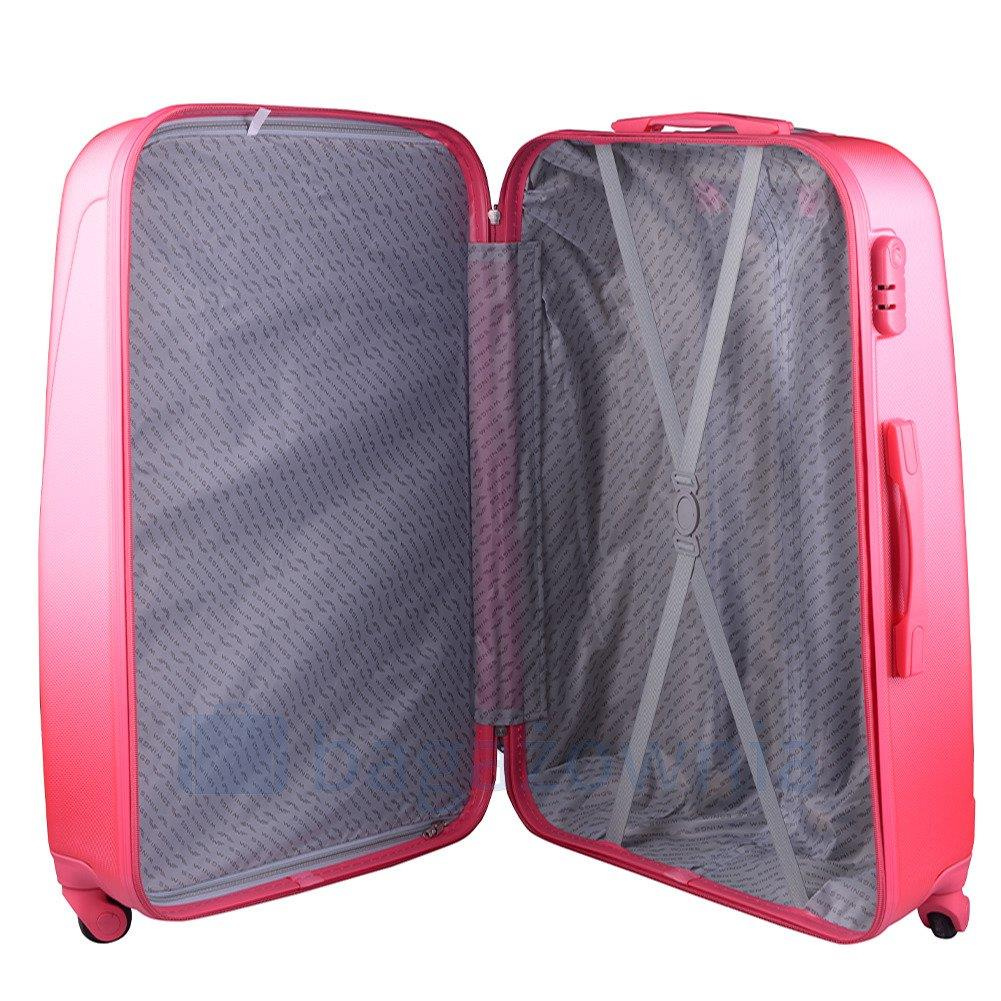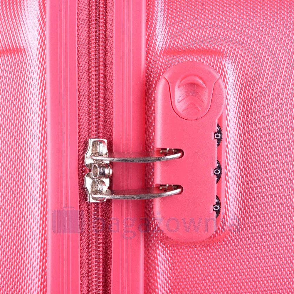 Nowoczesny, lekki model wykonany z bardzo wytrzymałego i odpornego na zarysowanie tworzywa ABS Plus, z dwupoziomową teleskopową rączką. Zewnętrzne, przyjemne w dotyku gumowe uchwyty oraz zamek szyfrowy uniemożliwiający dostanie się do wnętrza osobom niepożądanym. Trwały, duraluminiowy stelaż wbudowany w walizkę. Wyposażony w cztery obrotowe kauczukowe kółka, które zapewniają stabilność oraz lekkość prowadzenia w dowolnym kierunku. Wnętrze w ciemnym sygnowanym kolorze dzielone zamkiem błyskawicznym na dwie funkcjonalne komory.