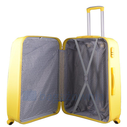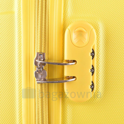 Nowoczesny, lekki model wykonany z bardzo wytrzymałego i odpornego na zarysowanie tworzywa ABS Plus, z dwupoziomową teleskopową rączką. Zewnętrzne, przyjemne w dotyku gumowe uchwyty oraz zamek szyfrowy uniemożliwiający dostanie się do wnętrza osobom niepożądanym. Trwały, duraluminiowy stelaż wbudowany w walizkę. Wyposażony w cztery obrotowe kauczukowe kółka, które zapewniają stabilność oraz lekkość prowadzenia w dowolnym kierunku. Wnętrze w ciemnym sygnowanym kolorze dzielone zamkiem błyskawicznym na dwie funkcjonalne komory.