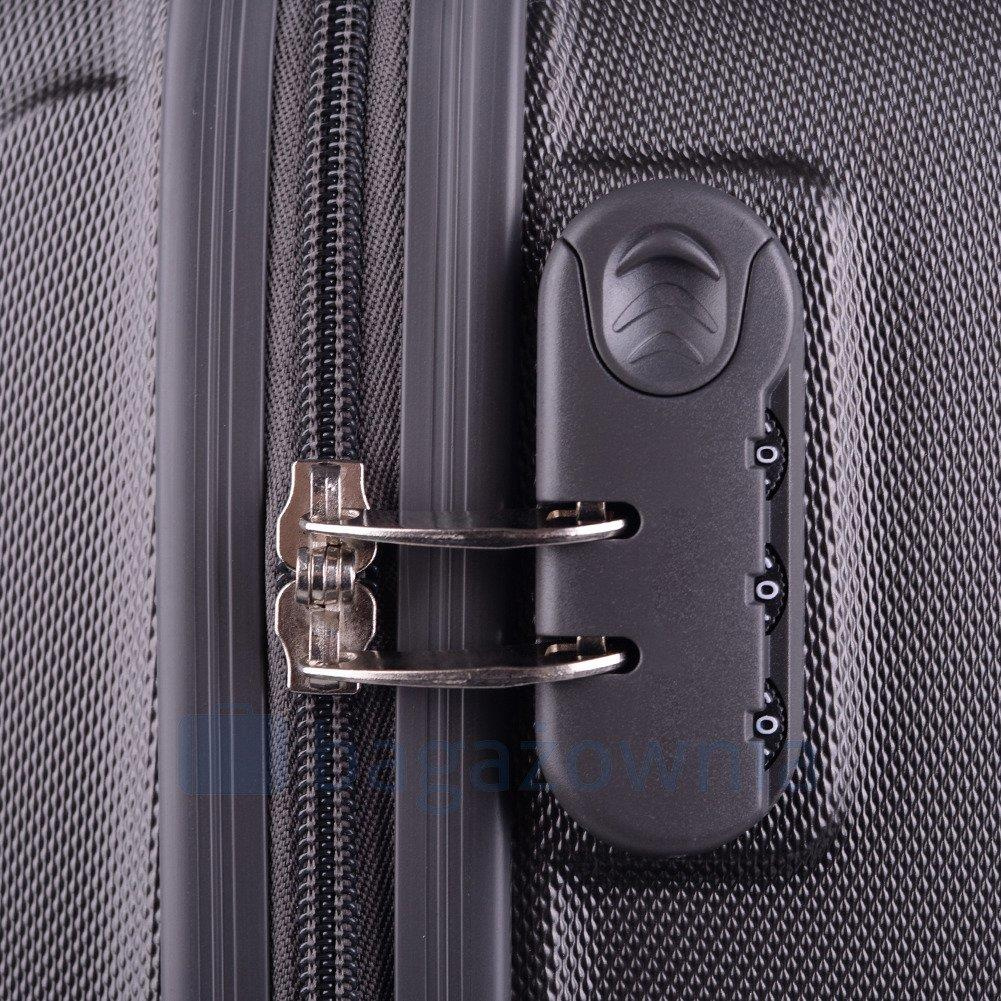 Nowoczesny, lekki model wykonany z bardzo wytrzymałego i odpornego na zarysowanie tworzywa ABS Plus, z dwupoziomową teleskopową rączką. Zewnętrzne, przyjemne w dotyku gumowe uchwyty oraz zamek szyfrowy uniemożliwiający dostanie się do wnętrza osobom niepożądanym. Trwały, duraluminiowy stelaż wbudowany w walizkę. Wyposażony w cztery obrotowe kauczukowe kółka, które zapewniają stabilność oraz lekkość prowadzenia w dowolnym kierunku. Wnętrze w ciemnym sygnowanym kolorze dzielone zamkiem błyskawicznym na dwie funkcjonalne komory.