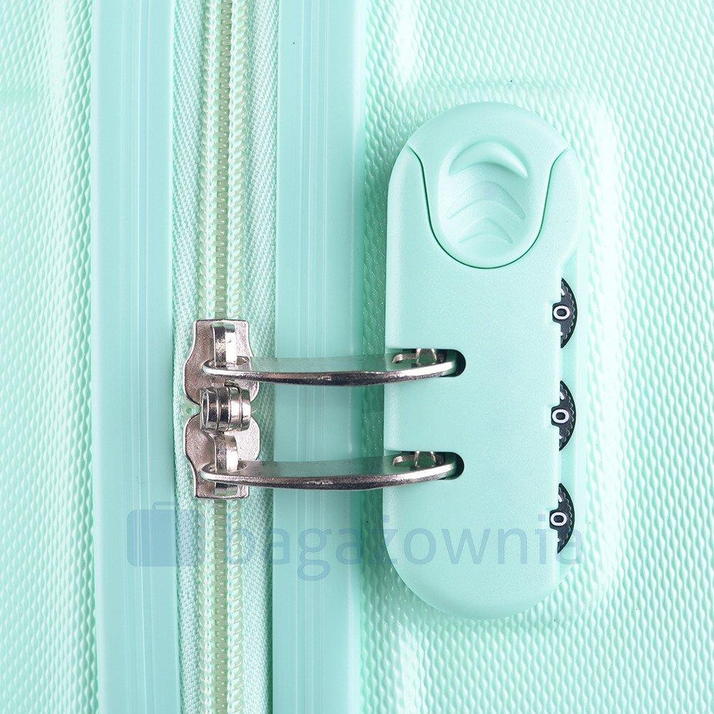 Nowoczesny, lekki model wykonany z bardzo wytrzymałego i odpornego na zarysowanie tworzywa ABS Plus, z dwupoziomową teleskopową rączką. Zewnętrzne, przyjemne w dotyku gumowe uchwyty oraz zamek szyfrowy uniemożliwiający dostanie się do wnętrza osobom niepożądanym. Trwały, duraluminiowy stelaż wbudowany w walizkę. Wyposażony w cztery obrotowe kauczukowe kółka, które zapewniają stabilność oraz lekkość prowadzenia w dowolnym kierunku. Wnętrze w ciemnym sygnowanym kolorze dzielone zamkiem błyskawicznym na dwie funkcjonalne komory.
