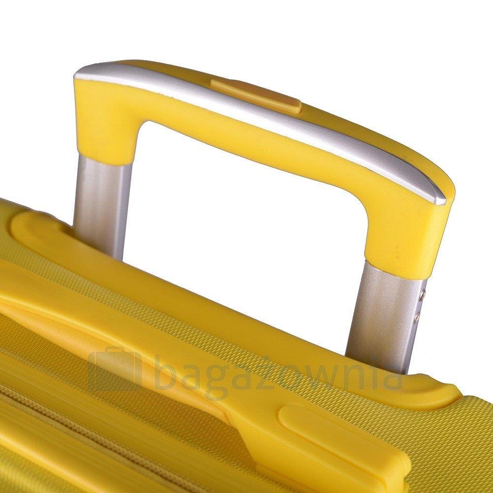 Nowoczesny, lekki model wykonany z bardzo wytrzymałego i odpornego na zarysowanie tworzywa ABS Plus, z dwupoziomową teleskopową rączką. Zewnętrzne, przyjemne w dotyku gumowe uchwyty oraz zamek szyfrowy uniemożliwiający dostanie się do wnętrza osobom niepożądanym. Trwały, duraluminiowy stelaż wbudowany w walizkę. Wyposażony w cztery obrotowe kauczukowe kółka, które zapewniają stabilność oraz lekkość prowadzenia w dowolnym kierunku. Wnętrze w ciemnym sygnowanym kolorze dzielone zamkiem błyskawicznym na dwie funkcjonalne komory.