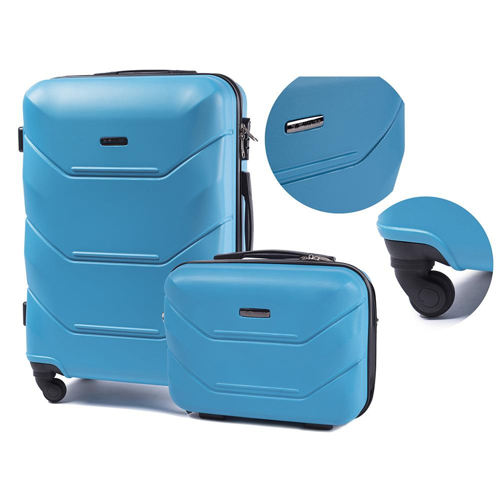 Nowoczesny, lekki model wykonany z bardzo wytrzymałego i odpornego na zarysowanie tworzywa ABS Plus, z dwupoziomową teleskopową rączką. Zewnętrzne, przyjemne w dotyku gumowe uchwyty oraz zamek szyfrowy uniemożliwiający dostanie się do wnętrza osobom niepożądanym. Trwały, duraluminiowy stelaż wbudowany w walizkę. Wyposażony w cztery obrotowe kauczukowe kółka, które zapewniają stabilność oraz lekkość prowadzenia w dowolnym kierunku. Wnętrze w ciemnym sygnowanym kolorze dzielone zamkiem błyskawicznym na dwie funkcjonalne komory.