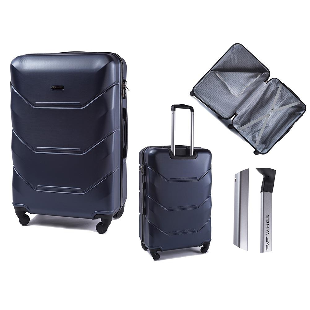 Nowoczesny, lekki model wykonany z bardzo wytrzymałego i odpornego na zarysowanie tworzywa ABS Plus, z dwupoziomową teleskopową rączką. Zewnętrzne, przyjemne w dotyku gumowe uchwyty oraz zamek szyfrowy uniemożliwiający dostanie się do wnętrza osobom niepożądanym. Trwały, duraluminiowy stelaż wbudowany w walizkę. Wyposażony w cztery obrotowe kauczukowe kółka, które zapewniają stabilność oraz lekkość prowadzenia w dowolnym kierunku. Wnętrze w ciemnym sygnowanym kolorze dzielone zamkiem błyskawicznym na dwie funkcjonalne komory.