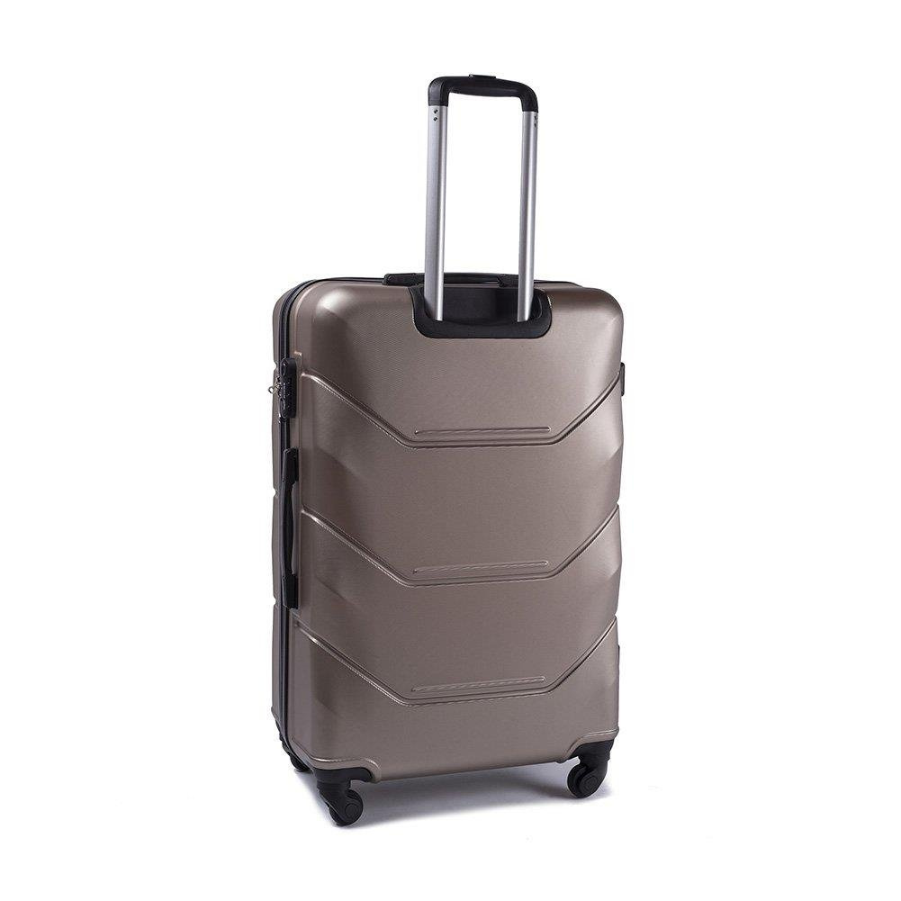 Nowoczesny, lekki model wykonany z bardzo wytrzymałego i odpornego na zarysowanie tworzywa ABS Plus, z dwupoziomową teleskopową rączką. Zewnętrzne, przyjemne w dotyku gumowe uchwyty oraz zamek szyfrowy uniemożliwiający dostanie się do wnętrza osobom niepożądanym. Trwały, duraluminiowy stelaż wbudowany w walizkę. Wyposażony w cztery obrotowe kauczukowe kółka, które zapewniają stabilność oraz lekkość prowadzenia w dowolnym kierunku. Wnętrze w ciemnym sygnowanym kolorze dzielone zamkiem błyskawicznym na dwie funkcjonalne komory.