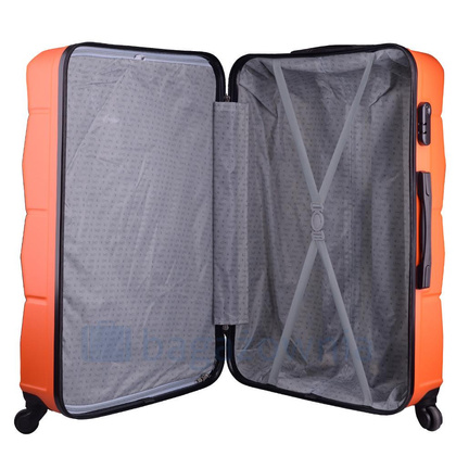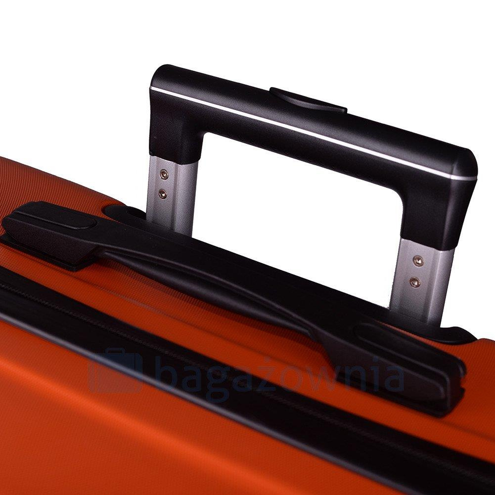 Nowoczesny, lekki model wykonany z bardzo wytrzymałego i odpornego na zarysowanie tworzywa ABS Plus, z dwupoziomową teleskopową rączką. Zewnętrzne, przyjemne w dotyku gumowe uchwyty oraz zamek szyfrowy uniemożliwiający dostanie się do wnętrza osobom niepożądanym. Trwały, duraluminiowy stelaż wbudowany w walizkę. Wyposażony w cztery obrotowe kauczukowe kółka, które zapewniają stabilność oraz lekkość prowadzenia w dowolnym kierunku. Wnętrze w ciemnym sygnowanym kolorze dzielone zamkiem błyskawicznym na dwie funkcjonalne komory.