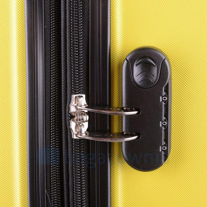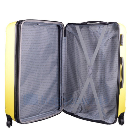 Nowoczesny, lekki model wykonany z bardzo wytrzymałego i odpornego na zarysowanie tworzywa ABS Plus, z dwupoziomową teleskopową rączką. Zewnętrzne, przyjemne w dotyku gumowe uchwyty oraz zamek szyfrowy uniemożliwiający dostanie się do wnętrza osobom niepożądanym. Trwały, duraluminiowy stelaż wbudowany w walizkę. Wyposażony w cztery obrotowe kauczukowe kółka, które zapewniają stabilność oraz lekkość prowadzenia w dowolnym kierunku. Wnętrze w ciemnym sygnowanym kolorze dzielone zamkiem błyskawicznym na dwie funkcjonalne komory.