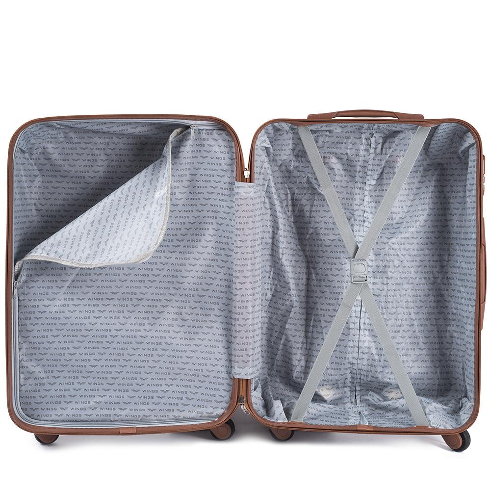 Nowoczesny, lekki model wykonany z bardzo wytrzymałego i odpornego na zarysowanie tworzywa ABS Plus, z dwupoziomową teleskopową rączką. Zewnętrzne, przyjemne w dotyku gumowe uchwyty oraz zamek szyfrowy uniemożliwiający dostanie się do wnętrza osobom niepożądanym. Trwały, duraluminiowy stelaż wbudowany w walizkę. Wyposażony w cztery obrotowe kauczukowe kółka, które zapewniają stabilność oraz lekkość prowadzenia w dowolnym kierunku. Wnętrze w ciemnym sygnowanym kolorze dzielone zamkiem błyskawicznym na dwie funkcjonalne komory.