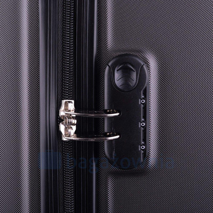 Nowoczesny, lekki model wykonany z bardzo wytrzymałego i odpornego na zarysowanie tworzywa ABS Plus, z dwupoziomową teleskopową rączką. Zewnętrzne, przyjemne w dotyku gumowe uchwyty oraz zamek szyfrowy uniemożliwiający dostanie się do wnętrza osobom niepożądanym. Trwały, duraluminiowy stelaż wbudowany w walizkę. Wyposażony w cztery odpinane, obrotowe kauczukowe kółka, które zapewniają stabilność oraz lekkość prowadzenia w dowolnym kierunku. Wnętrze w ciemnym sygnowanym kolorze dzielone zamkiem błyskawicznym na dwie funkcjonalne komory.