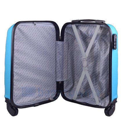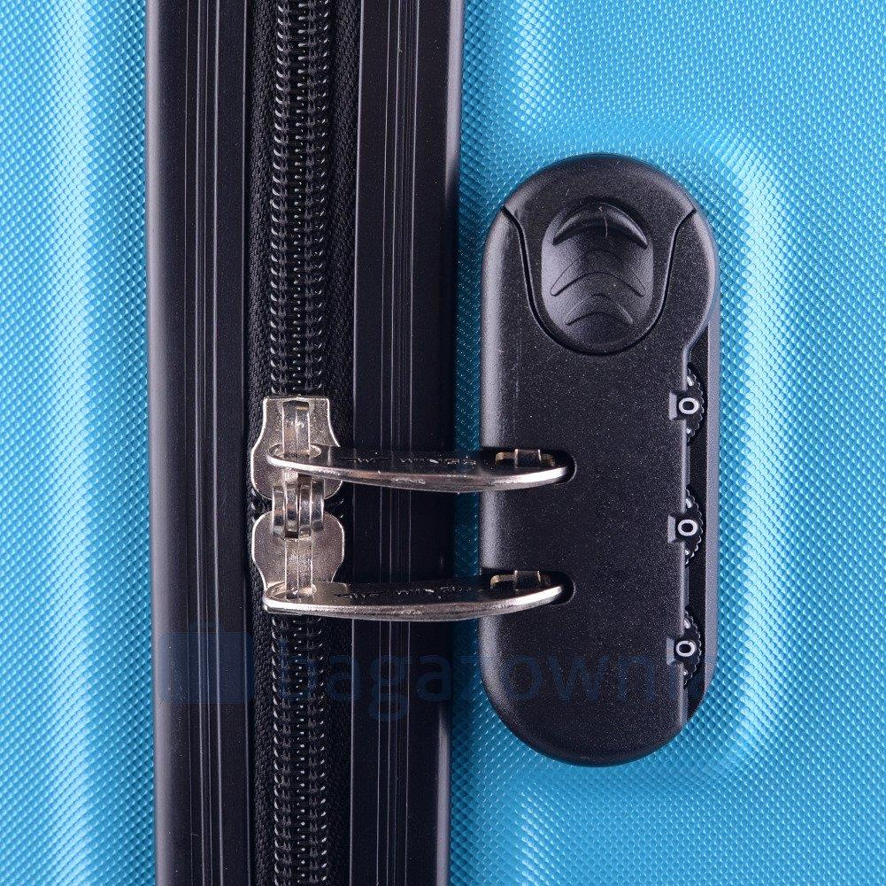 Nowoczesny, lekki model wykonany z bardzo wytrzymałego i odpornego na zarysowanie tworzywa ABS Plus, z dwupoziomową teleskopową rączką. Zewnętrzne, przyjemne w dotyku gumowe uchwyty oraz zamek szyfrowy uniemożliwiający dostanie się do wnętrza osobom niepożądanym. Trwały, duraluminiowy stelaż wbudowany w walizkę. Wyposażony w cztery odpinane, obrotowe kauczukowe kółka, które zapewniają stabilność oraz lekkość prowadzenia w dowolnym kierunku. Wnętrze w ciemnym sygnowanym kolorze dzielone zamkiem błyskawicznym na dwie funkcjonalne komory.