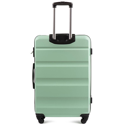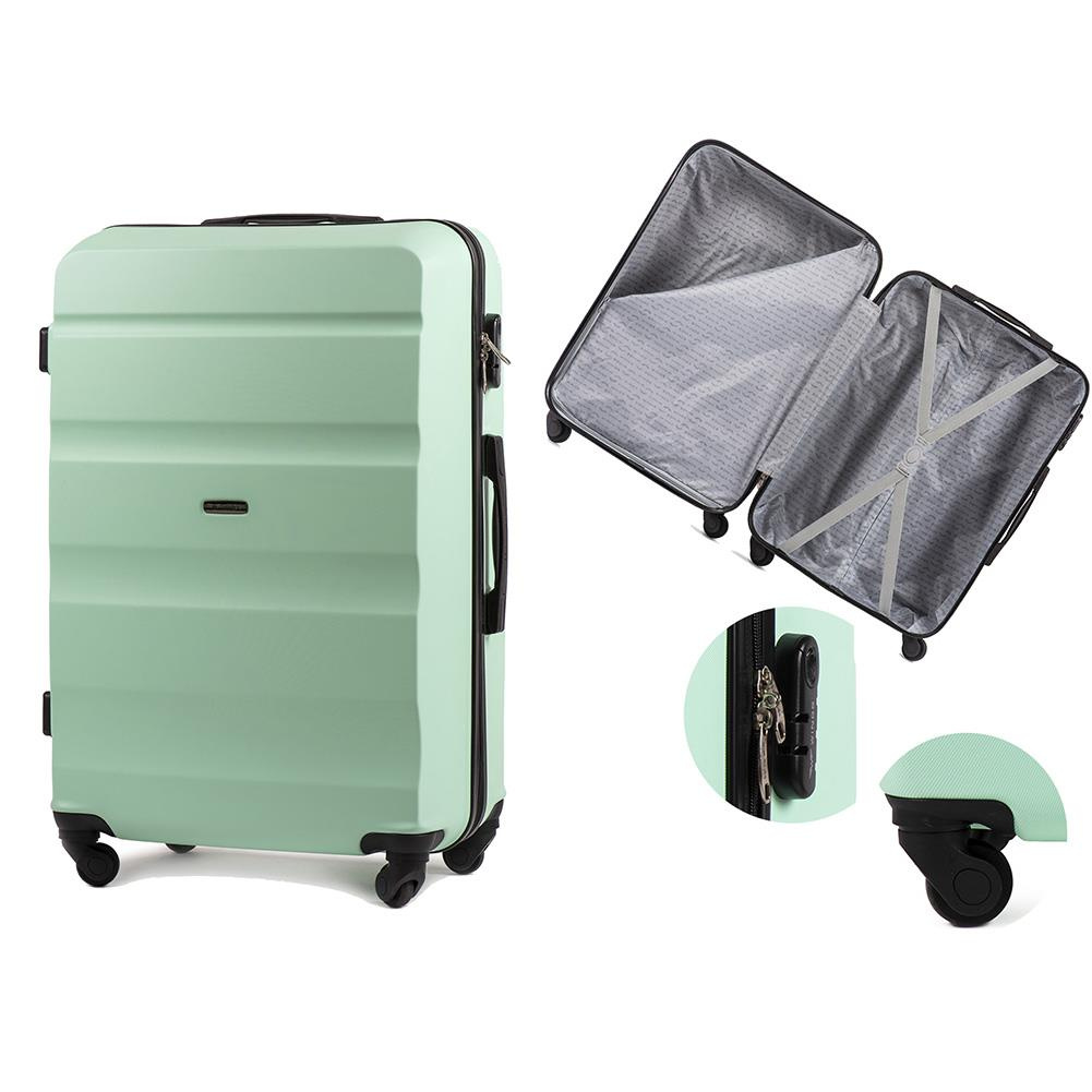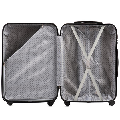 Nowoczesny, lekki model wykonany z bardzo wytrzymałego i odpornego na zarysowanie tworzywa ABS Plus, z dwupoziomową teleskopową rączką. Zewnętrzne, przyjemne w dotyku gumowe uchwyty oraz zamek szyfrowy uniemożliwiający dostanie się do wnętrza osobom niepożądanym. Trwały, duraluminiowy stelaż wbudowany w walizkę. Wyposażony w cztery odpinane, obrotowe kauczukowe kółka, które zapewniają stabilność oraz lekkość prowadzenia w dowolnym kierunku. Wnętrze w ciemnym sygnowanym kolorze dzielone zamkiem błyskawicznym na dwie funkcjonalne komory.