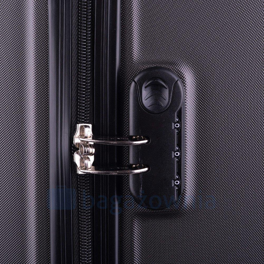 Nowoczesny, lekki model wykonany z bardzo wytrzymałego i odpornego na zarysowanie tworzywa ABS Plus, z dwupoziomową teleskopową rączką. Zewnętrzne, przyjemne w dotyku gumowe uchwyty oraz zamek szyfrowy uniemożliwiający dostanie się do wnętrza osobom niepożądanym. Trwały, duraluminiowy stelaż wbudowany w walizkę. Wyposażony w cztery odpinane, obrotowe kauczukowe kółka, które zapewniają stabilność oraz lekkość prowadzenia w dowolnym kierunku. Wnętrze w ciemnym sygnowanym kolorze dzielone zamkiem błyskawicznym na dwie funkcjonalne komory.
