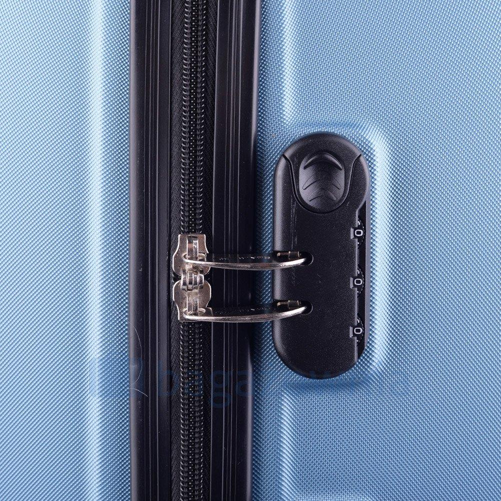 Nowoczesny, lekki model wykonany z bardzo wytrzymałego i odpornego na zarysowanie tworzywa ABS Plus, z dwupoziomową teleskopową rączką. Zewnętrzne, przyjemne w dotyku gumowe uchwyty oraz zamek szyfrowy uniemożliwiający dostanie się do wnętrza osobom niepożądanym. Trwały, duraluminiowy stelaż wbudowany w walizkę. Wyposażony w cztery odpinane, obrotowe kauczukowe kółka, które zapewniają stabilność oraz lekkość prowadzenia w dowolnym kierunku. Wnętrze w ciemnym sygnowanym kolorze dzielone zamkiem błyskawicznym na dwie funkcjonalne komory.