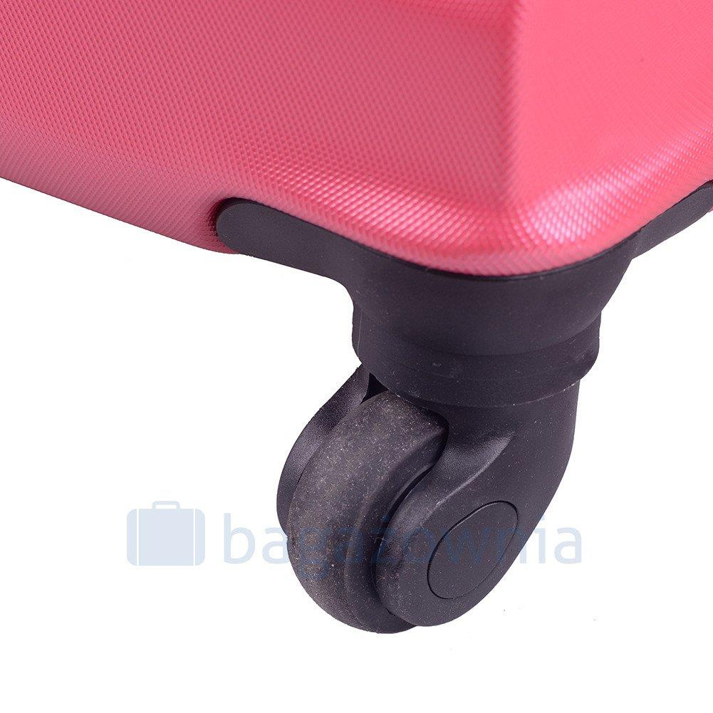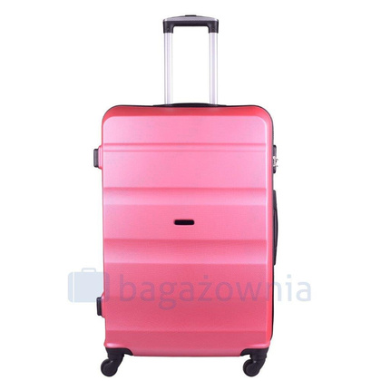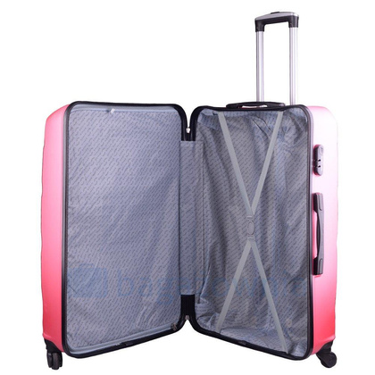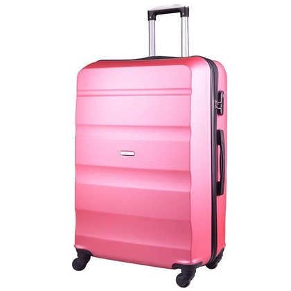 Nowoczesny, lekki model wykonany z bardzo wytrzymałego i odpornego na zarysowanie tworzywa ABS Plus, z dwupoziomową teleskopową rączką. Zewnętrzne, przyjemne w dotyku gumowe uchwyty oraz zamek szyfrowy uniemożliwiający dostanie się do wnętrza osobom niepożądanym. Trwały, duraluminiowy stelaż wbudowany w walizkę. Wyposażony w cztery odpinane, obrotowe kauczukowe kółka, które zapewniają stabilność oraz lekkość prowadzenia w dowolnym kierunku. Wnętrze w ciemnym sygnowanym kolorze dzielone zamkiem błyskawicznym na dwie funkcjonalne komory.