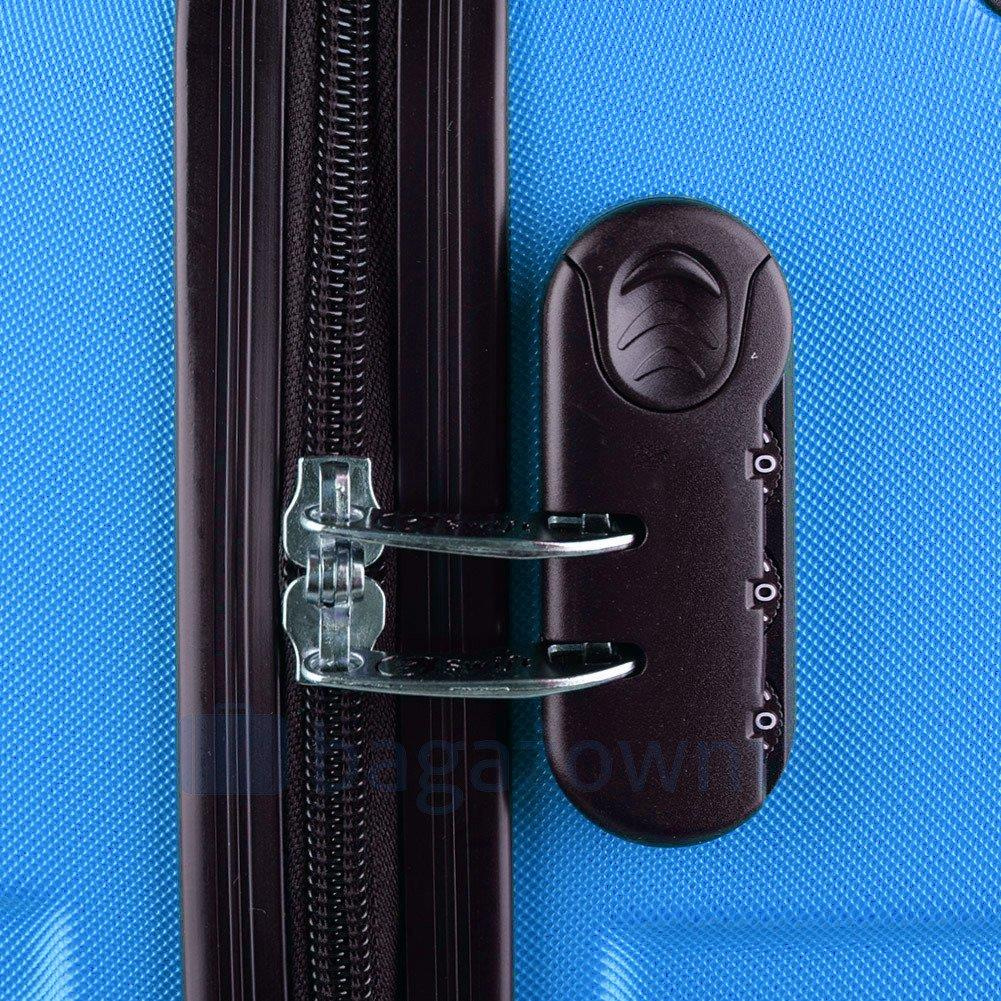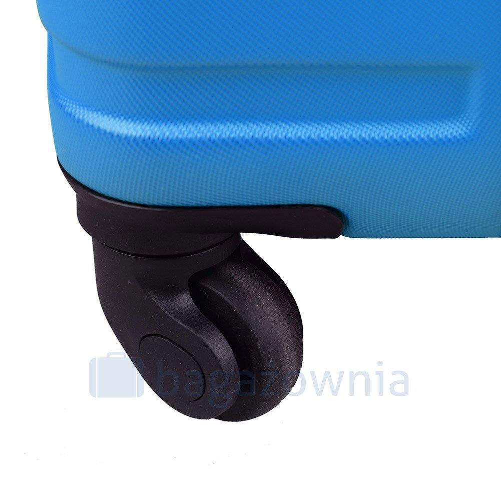 Nowoczesny, lekki model wykonany z bardzo wytrzymałego i odpornego na zarysowanie tworzywa ABS Plus, z dwupoziomową teleskopową rączką. Zewnętrzne, przyjemne w dotyku gumowe uchwyty oraz zamek szyfrowy uniemożliwiający dostanie się do wnętrza osobom niepożądanym. Trwały, duraluminiowy stelaż wbudowany w walizkę. Wyposażony w cztery obrotowe kauczukowe kółka, które zapewniają stabilność oraz lekkość prowadzenia w dowolnym kierunku. Wnętrze w jasnym kolorze dzielone zamkiem błyskawicznym na dwie funkcjonalne komory.