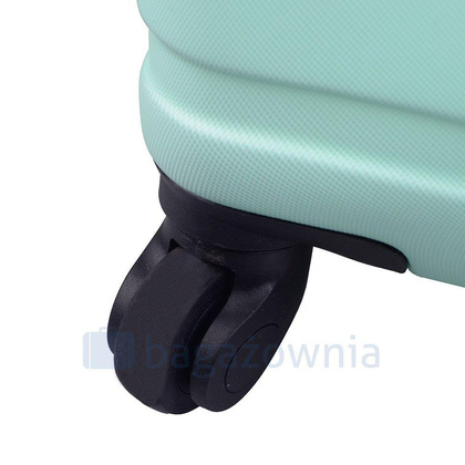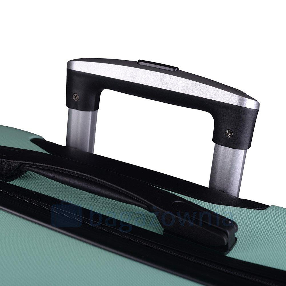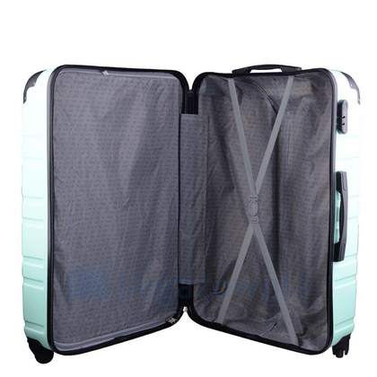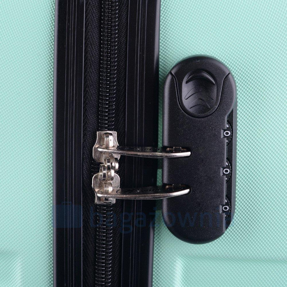 Nowoczesny, lekki model wykonany z bardzo wytrzymałego i odpornego na zarysowanie tworzywa ABS Plus, z dwupoziomową teleskopową rączką. Zewnętrzne, przyjemne w dotyku gumowe uchwyty oraz zamek szyfrowy uniemożliwiający dostanie się do wnętrza osobom niepożądanym. Trwały, duraluminiowy stelaż wbudowany w walizkę. Wyposażony w cztery obrotowe kauczukowe kółka, które zapewniają stabilność oraz lekkość prowadzenia w dowolnym kierunku. Wnętrze w jasnym kolorze dzielone zamkiem błyskawicznym na dwie funkcjonalne komory.