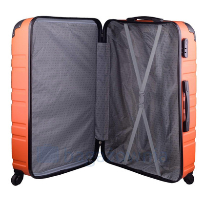 Nowoczesny, lekki model wykonany z bardzo wytrzymałego i odpornego na zarysowanie tworzywa ABS Plus, z dwupoziomową teleskopową rączką. Zewnętrzne, przyjemne w dotyku gumowe uchwyty oraz zamek szyfrowy uniemożliwiający dostanie się do wnętrza osobom niepożądanym. Trwały, duraluminiowy stelaż wbudowany w walizkę. Wyposażony w cztery obrotowe kauczukowe kółka, które zapewniają stabilność oraz lekkość prowadzenia w dowolnym kierunku. Wnętrze w jasnym kolorze dzielone zamkiem błyskawicznym na dwie funkcjonalne komory.