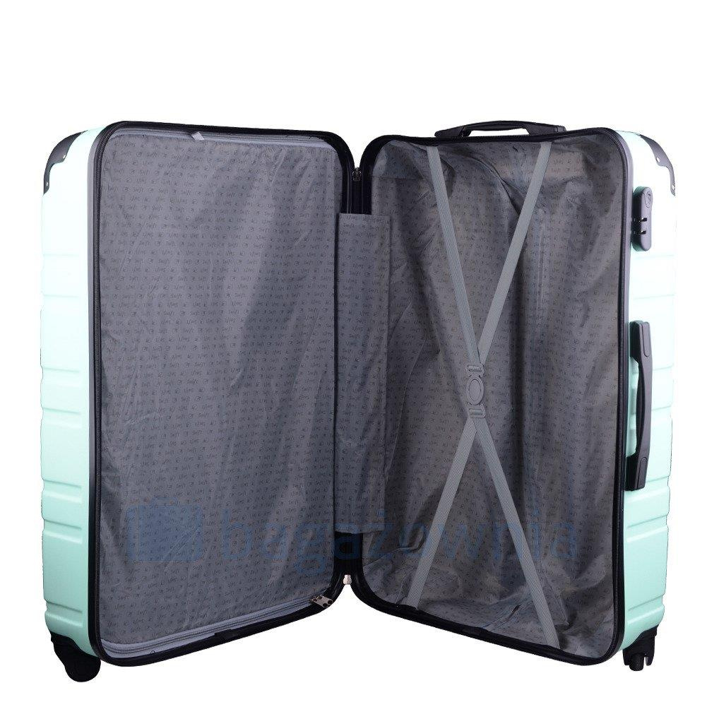 Nowoczesny, lekki model wykonany z bardzo wytrzymałego i odpornego na zarysowanie tworzywa ABS Plus, z dwupoziomową teleskopową rączką. Zewnętrzne, przyjemne w dotyku gumowe uchwyty oraz zamek szyfrowy uniemożliwiający dostanie się do wnętrza osobom niepożądanym. Trwały, duraluminiowy stelaż wbudowany w walizkę. Wyposażony w cztery obrotowe kauczukowe kółka, które zapewniają stabilność oraz lekkość prowadzenia w dowolnym kierunku. Wnętrze w jasnym kolorze dzielone zamkiem błyskawicznym na dwie funkcjonalne komory.