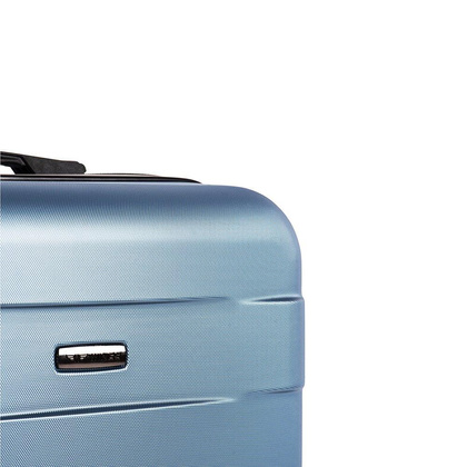 Nowoczesny, lekki model wykonany z bardzo wytrzymałego i odpornego na zarysowanie tworzywa ABS Plus, z dwupoziomową teleskopową rączką. Zewnętrzne, przyjemne w dotyku gumowe uchwyty oraz zamek szyfrowy uniemożliwiający dostanie się do wnętrza osobom niepożądanym. Trwały, duraluminiowy stelaż wbudowany w walizkę. Wyposażony w cztery obrotowe kauczukowe kółka, które zapewniają stabilność oraz lekkość prowadzenia w dowolnym kierunku. Wnętrze w ciemnym sygnowanym kolorze dzielone zamkiem błyskawicznym na dwie funkcjonalne komory.