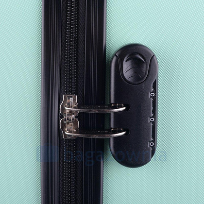 Nowoczesny, lekki model wykonany z bardzo wytrzymałego i odpornego na zarysowanie tworzywa ABS Plus, z dwupoziomową teleskopową rączką. Zewnętrzne, przyjemne w dotyku gumowe uchwyty oraz zamek szyfrowy uniemożliwiający dostanie się do wnętrza osobom niepożądanym. Trwały, duraluminiowy stelaż wbudowany w walizkę. Wyposażony w cztery obrotowe kauczukowe kółka, które zapewniają stabilność oraz lekkość prowadzenia w dowolnym kierunku. Wnętrze w ciemnym sygnowanym kolorze dzielone zamkiem błyskawicznym na dwie funkcjonalne komory.