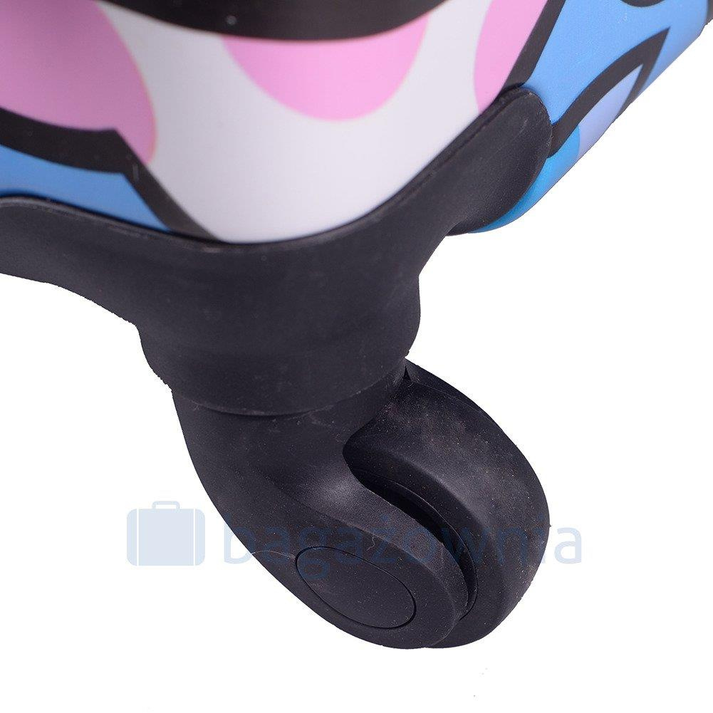 - 4 koła (spinner 360) (koła wykonane z gumy i PVC co dodatkowo wzmacnia je przed uderzeniami zewnętrznymi, oś na której zamocowane zostało koło wzmocniona pyłem diamentowym)
