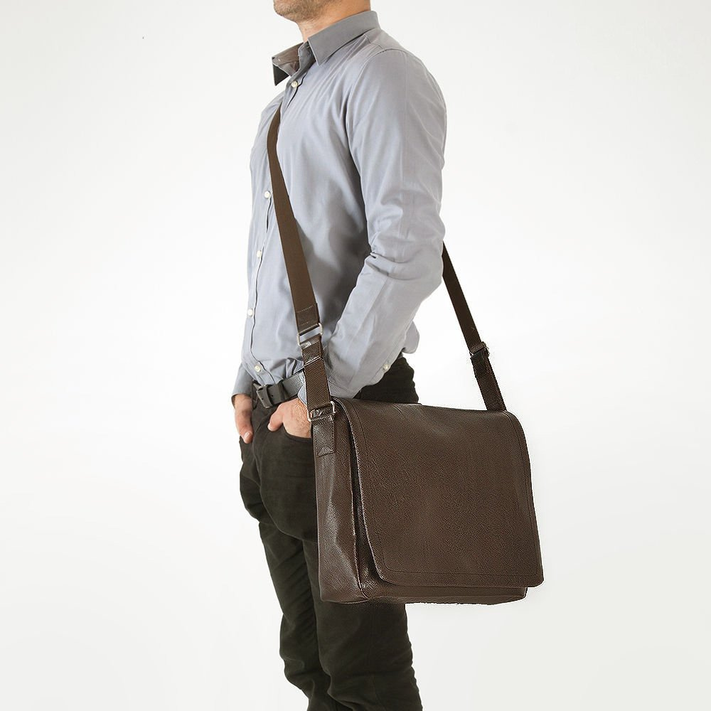 Męska torba na ramię z regulowanym paskiem będzie świetnym dodatkiem do biznesowych jak i codziennych stylizacji. Torba o fasonie messenger pomieści wszystkie niezbędne przedmioty, dokumenty formatu A4, a nawet 15 calowy laptop. Klasyczny model sprawia, że akcesorium jest uniwersalne i ponadczasowe.