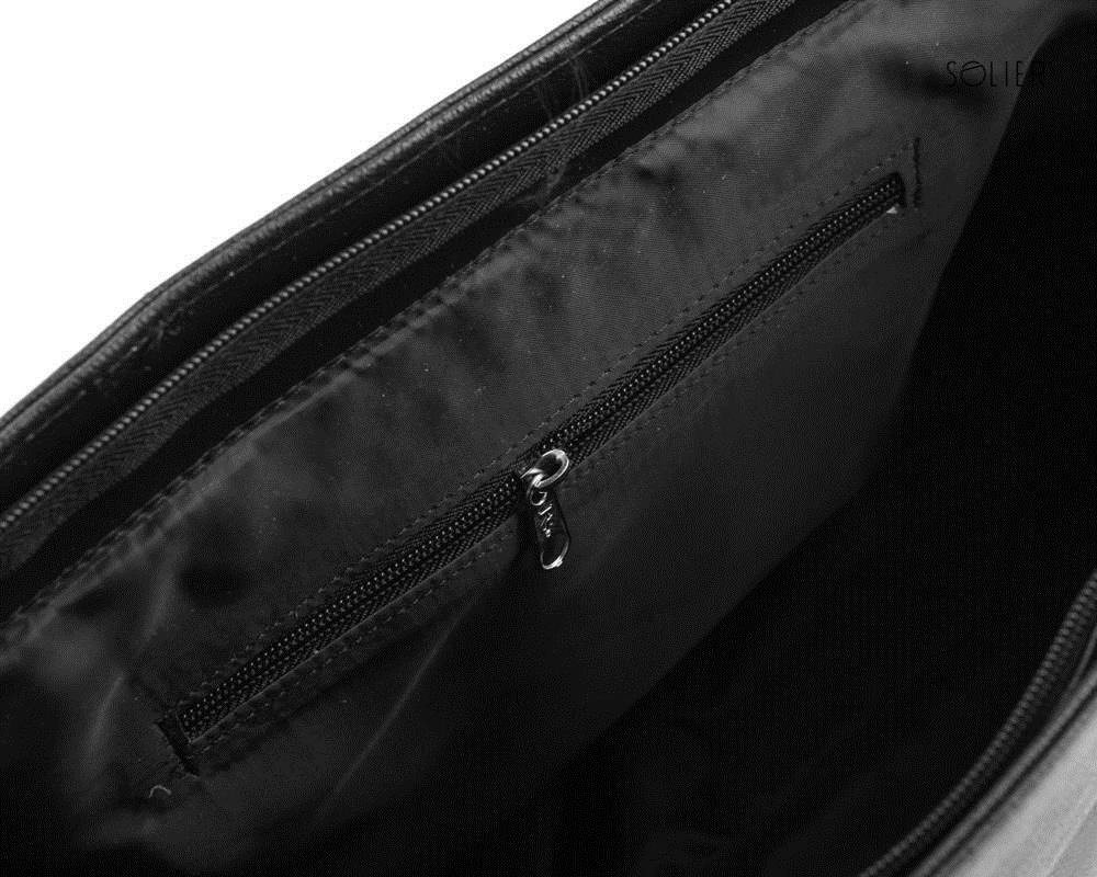 - dodatkowe kieszeni z przodu na kapie i z tyłu torby, zamykane na suwak
